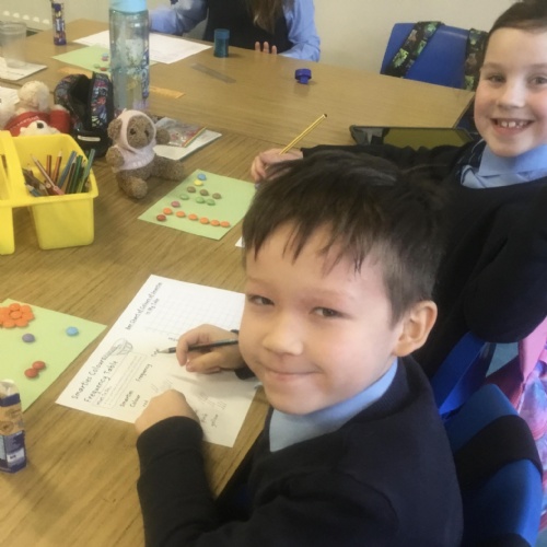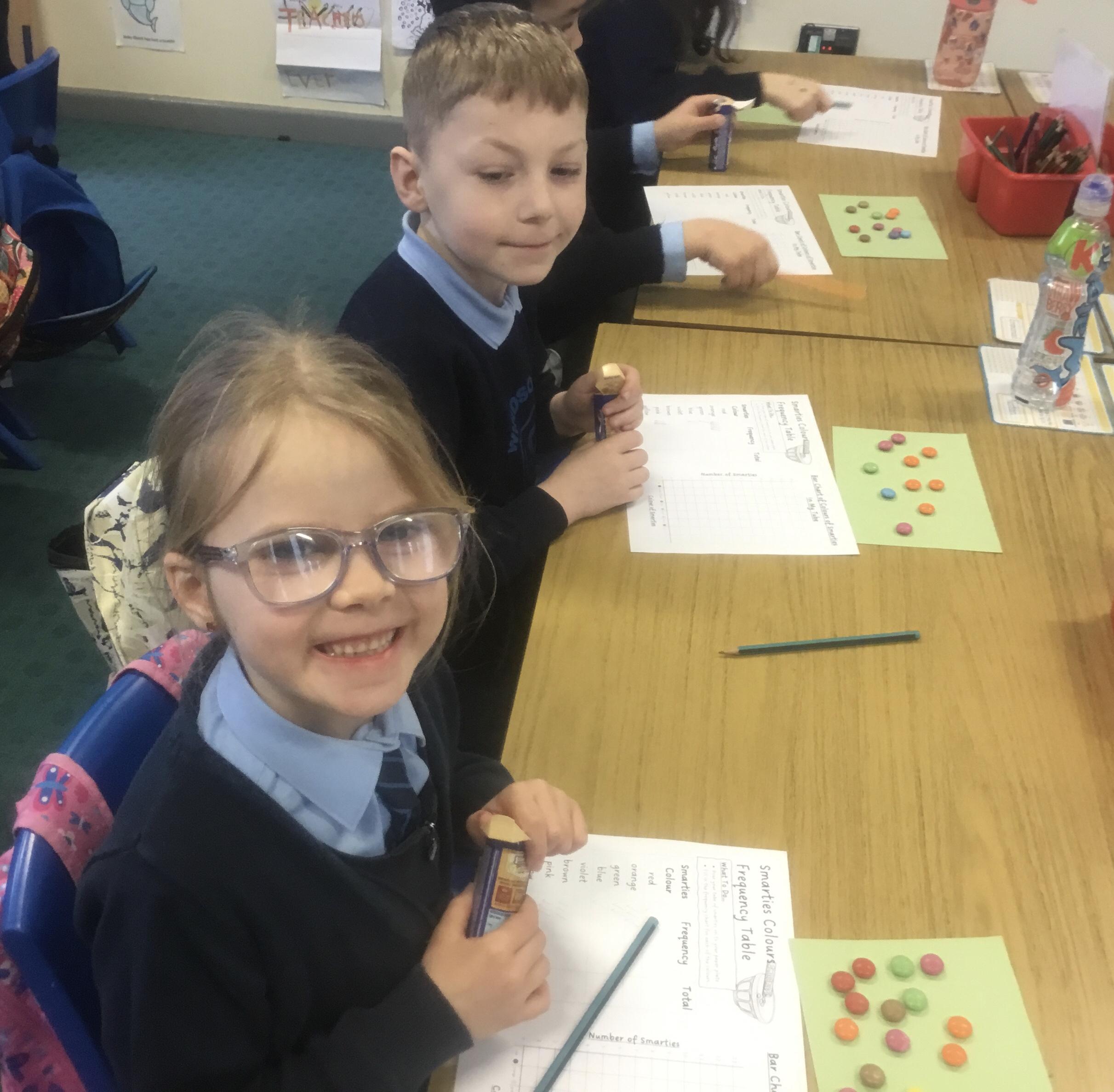 As part of work in numeracy, we all enjoyed investigating the different colours found in a tube of smarties.