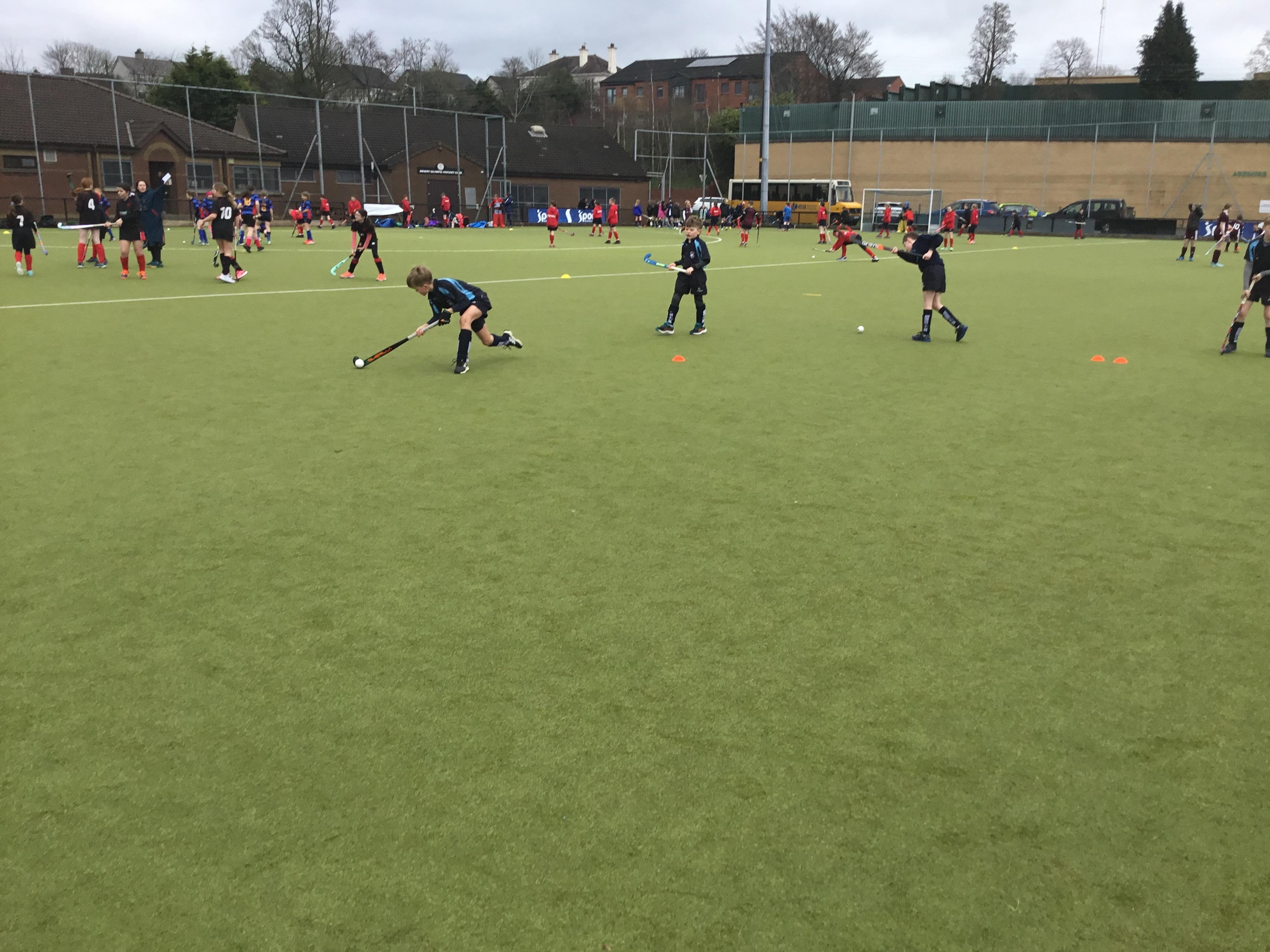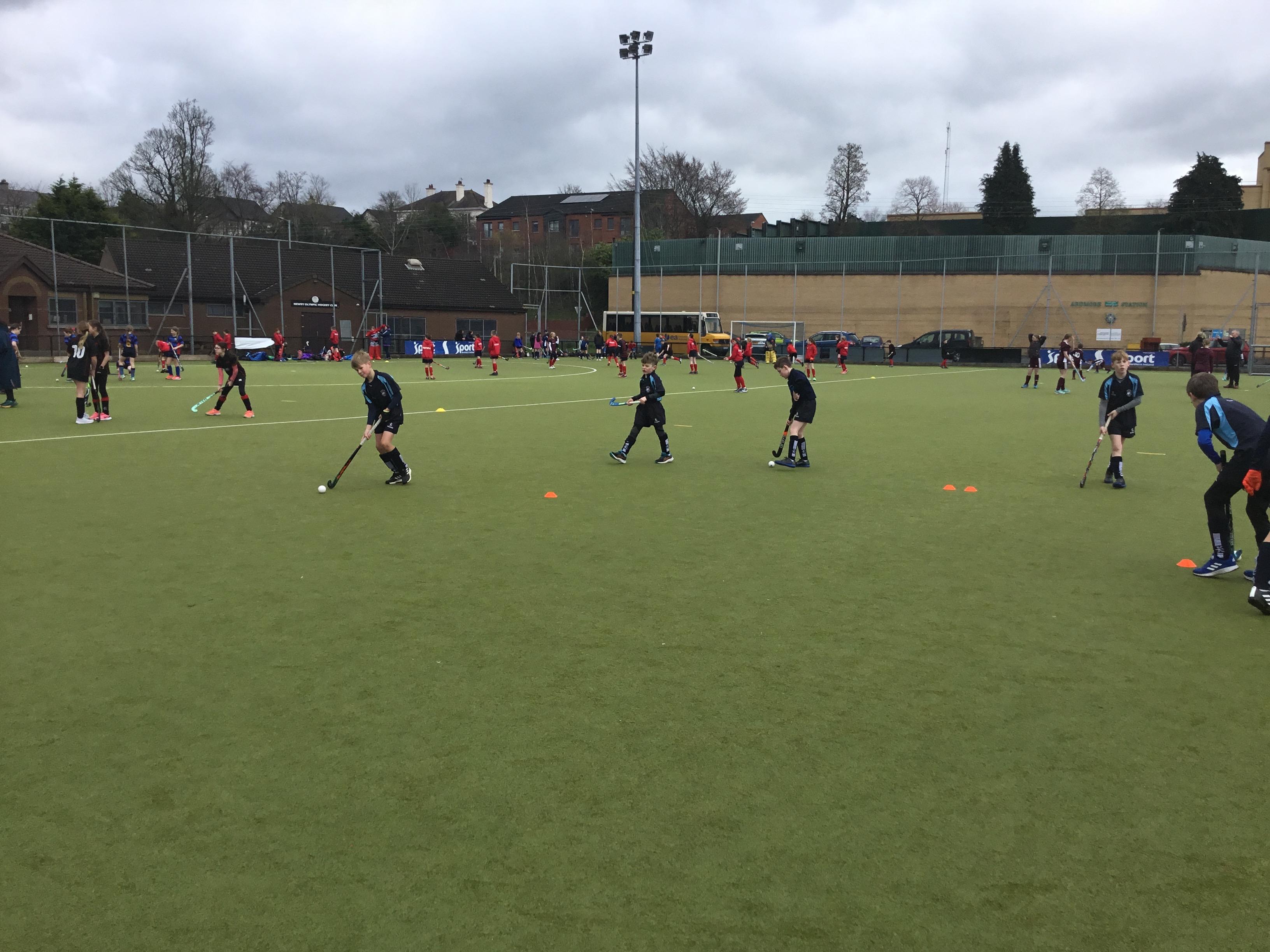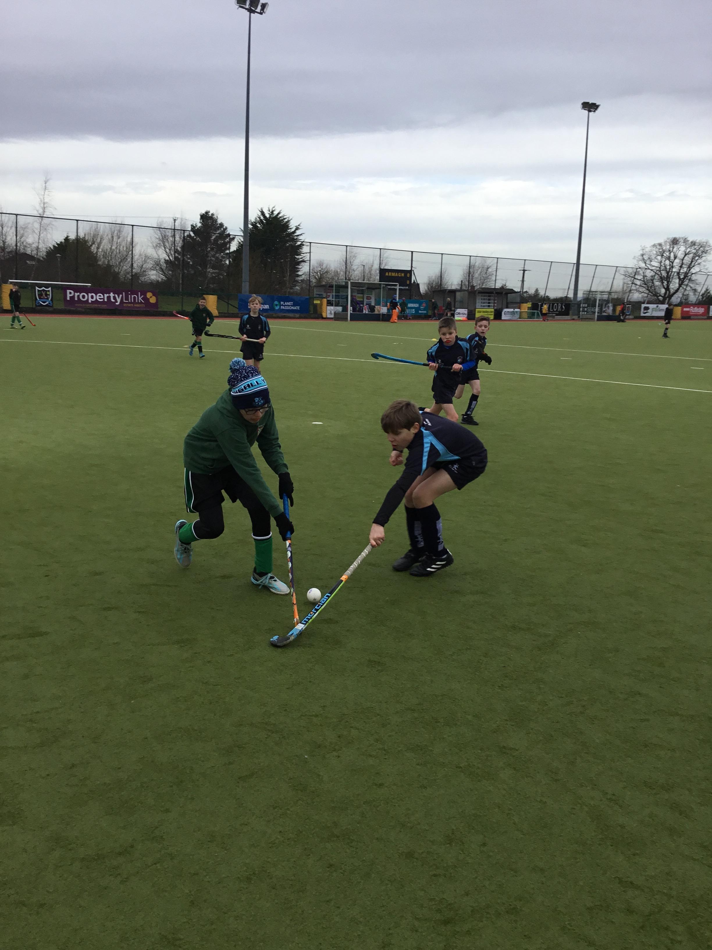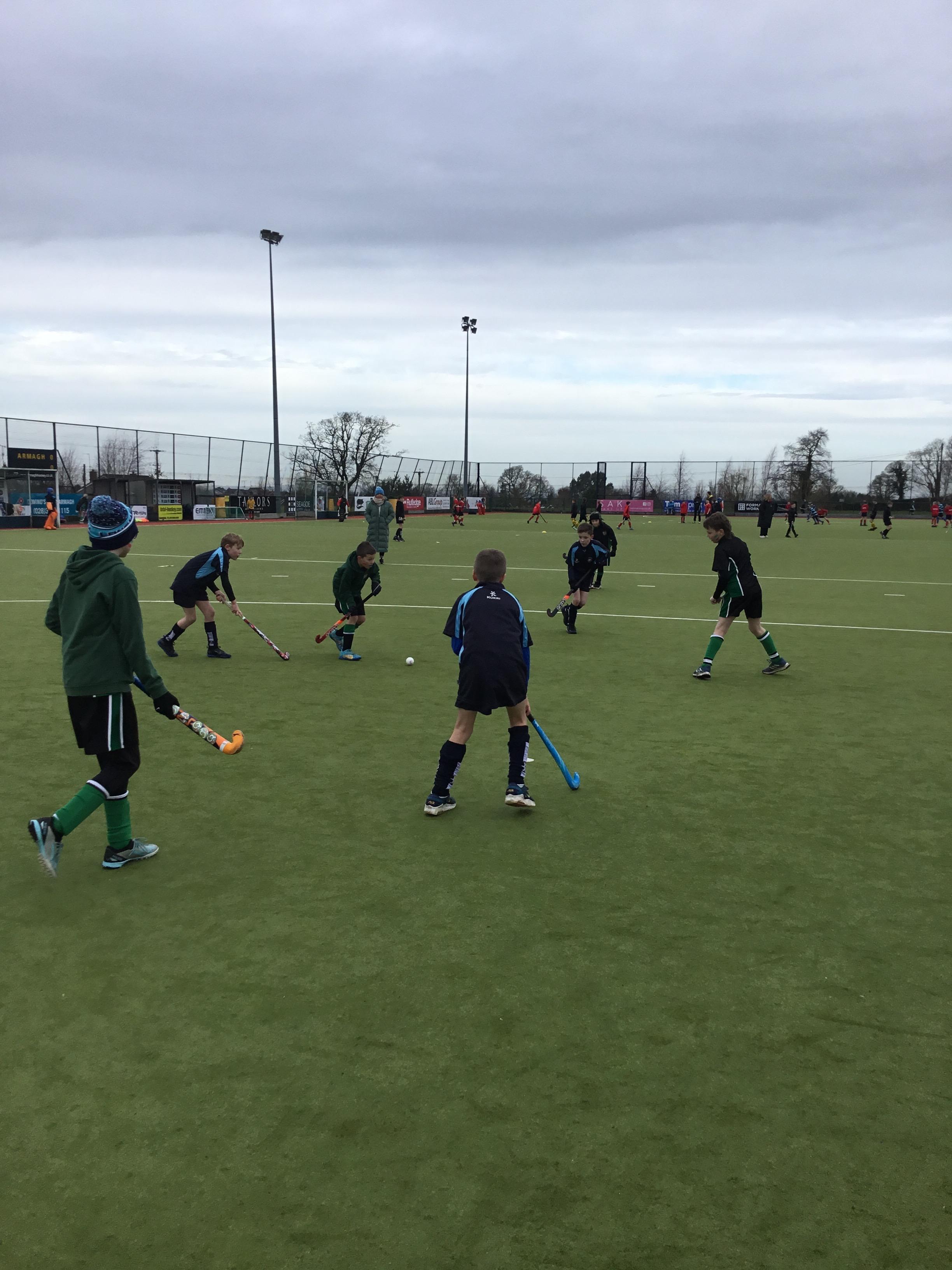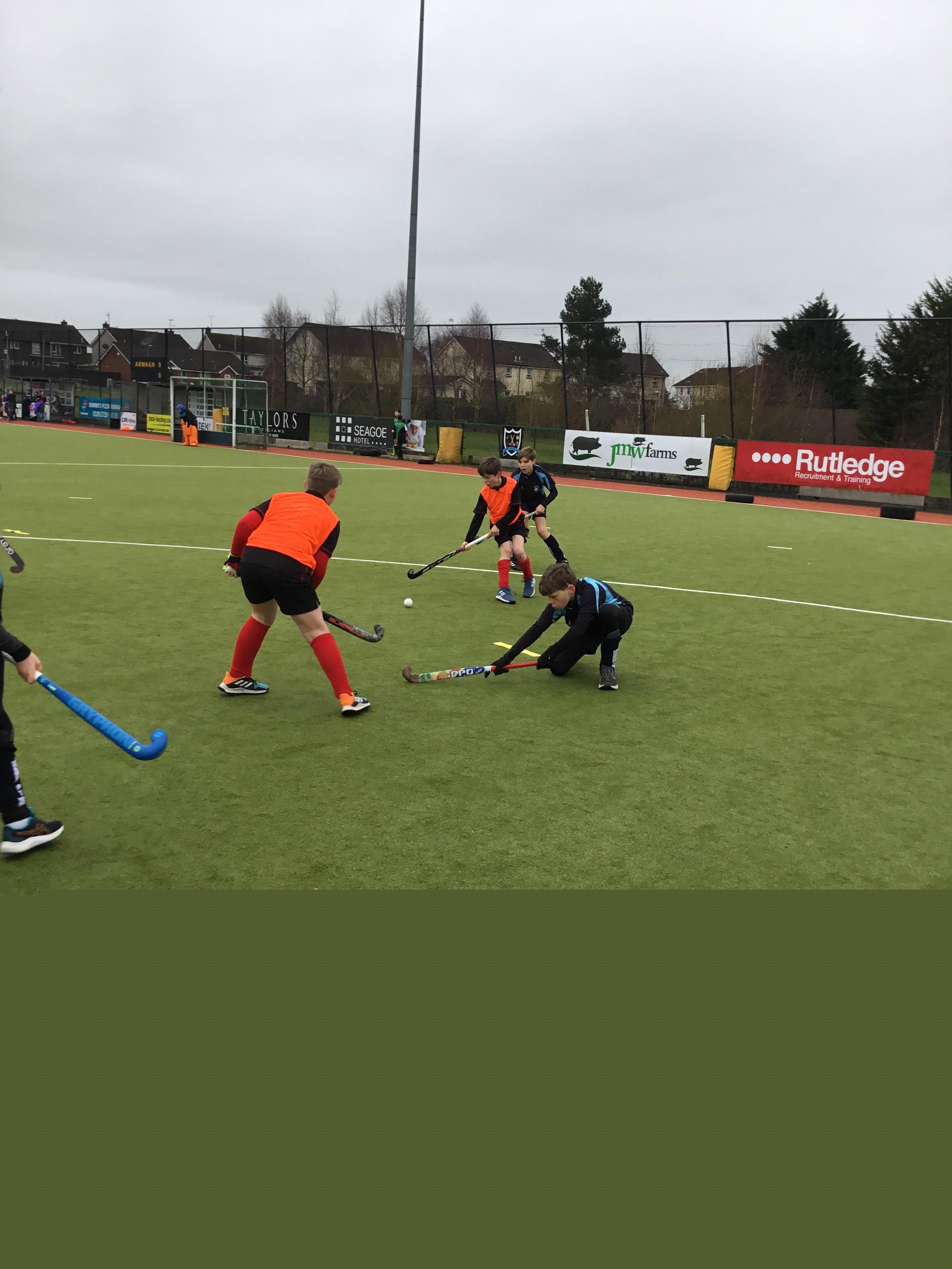 Boys hockey team in action against Markethill PS, Dromore Central PS and Mullavilly PS (February 2019)