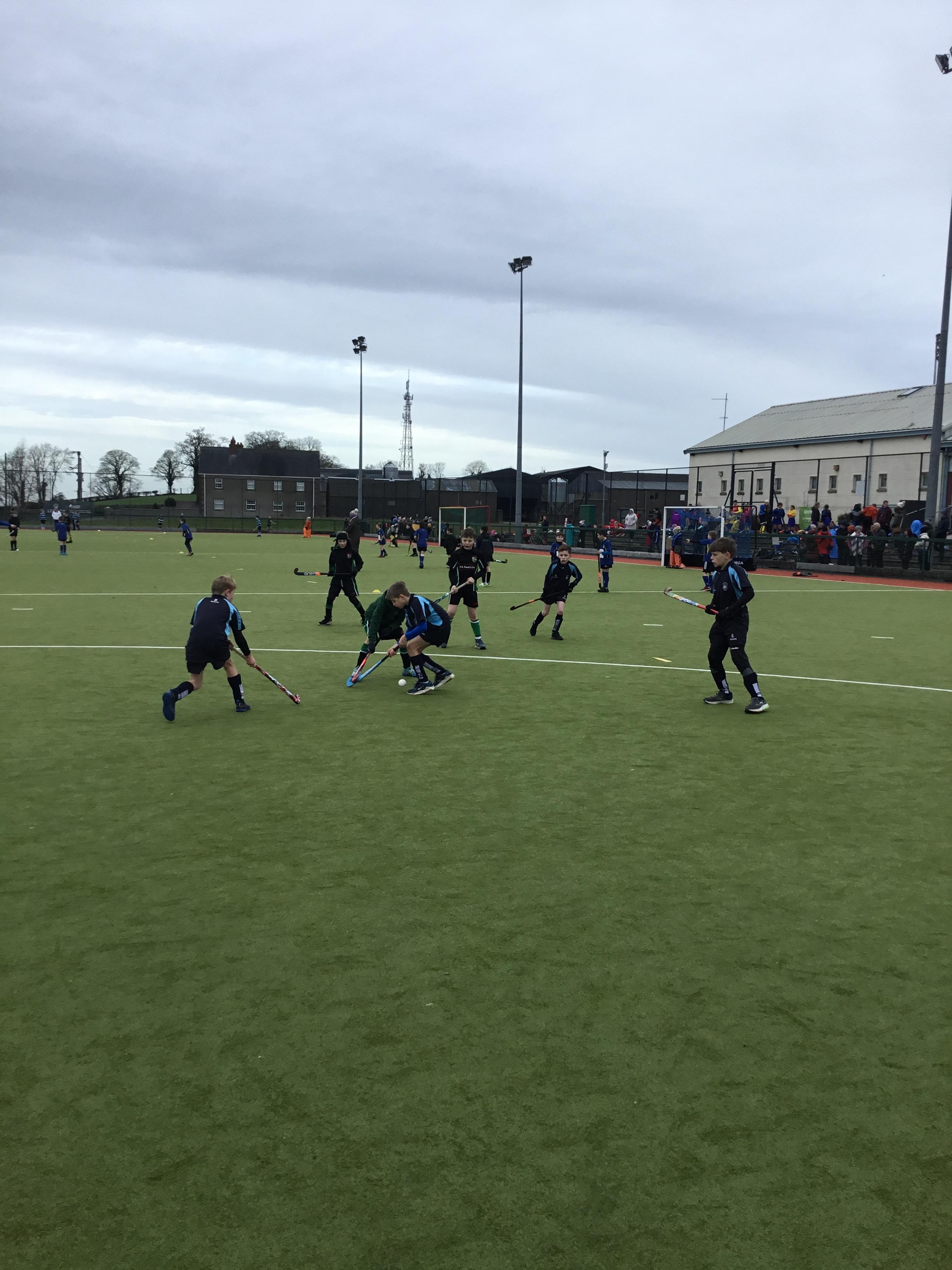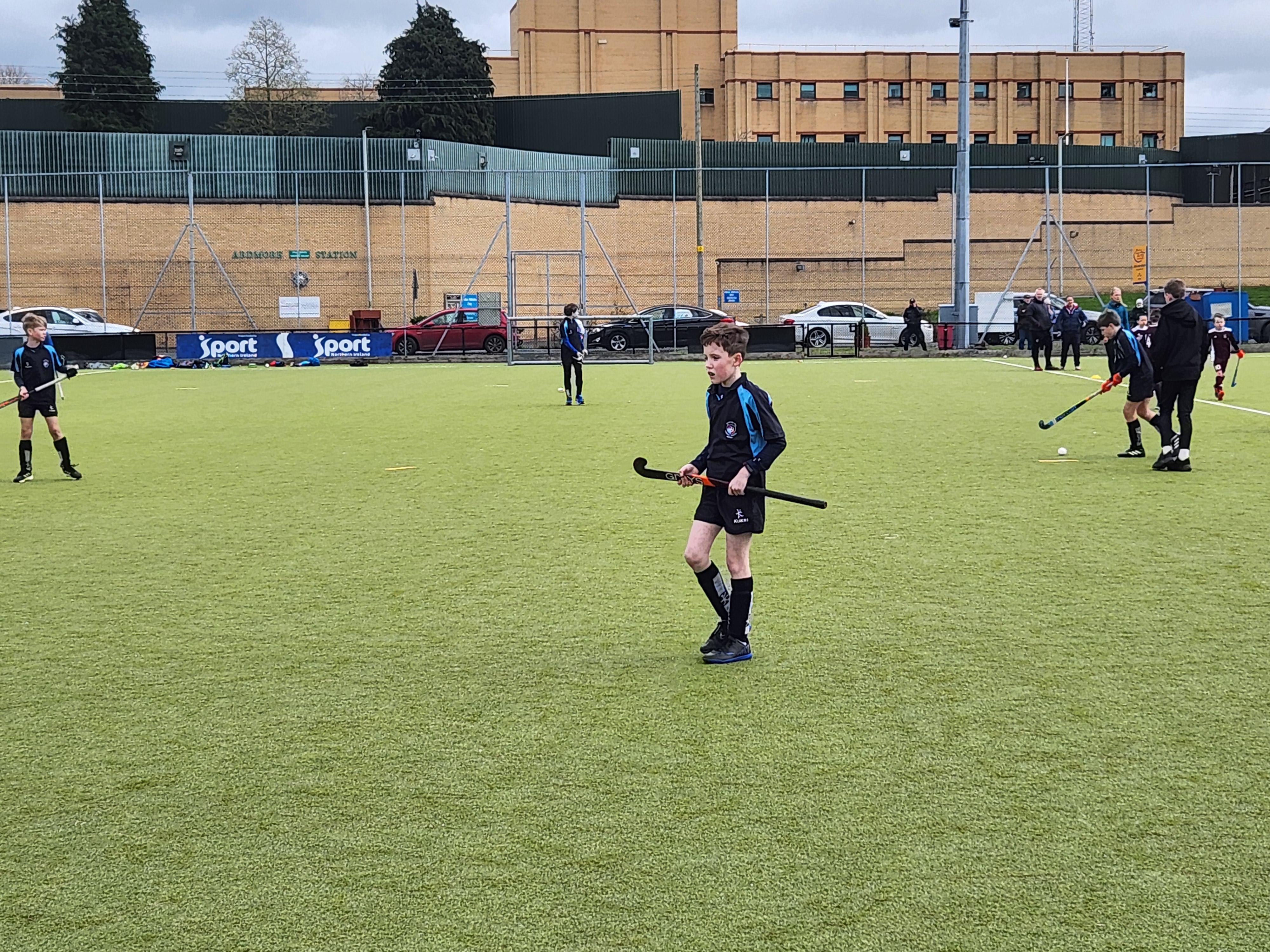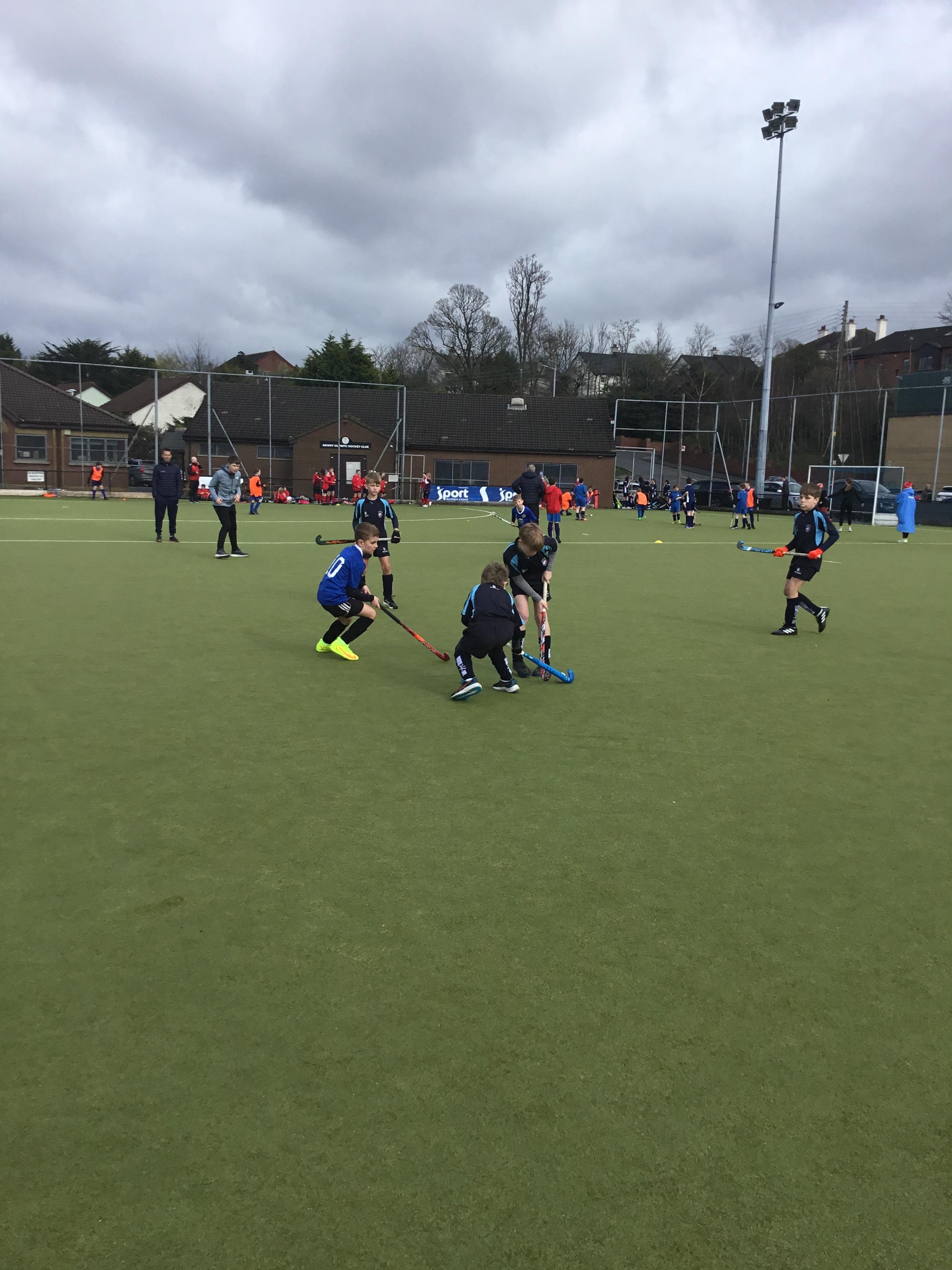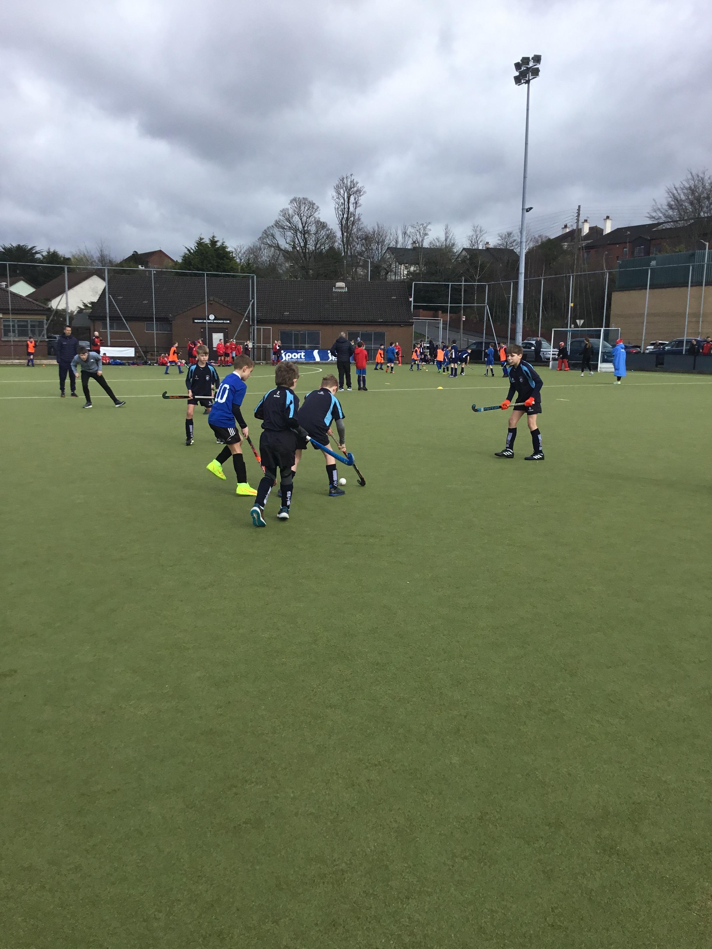 Boys hockey team in action against Markethill PS, Dromore Central PS and Mullavilly PS (February 2019)