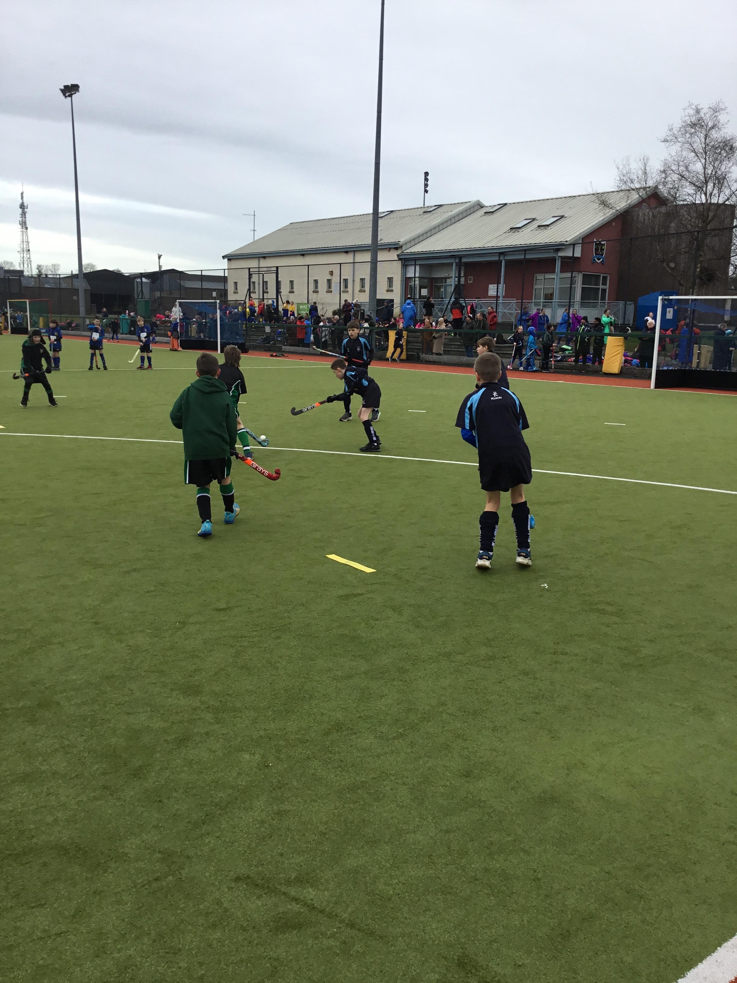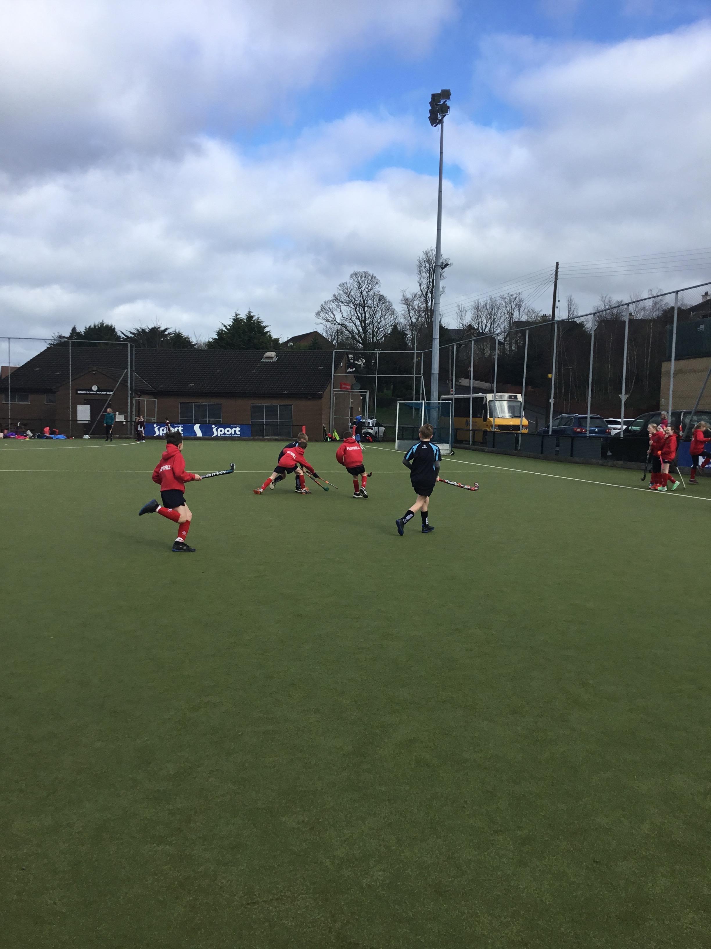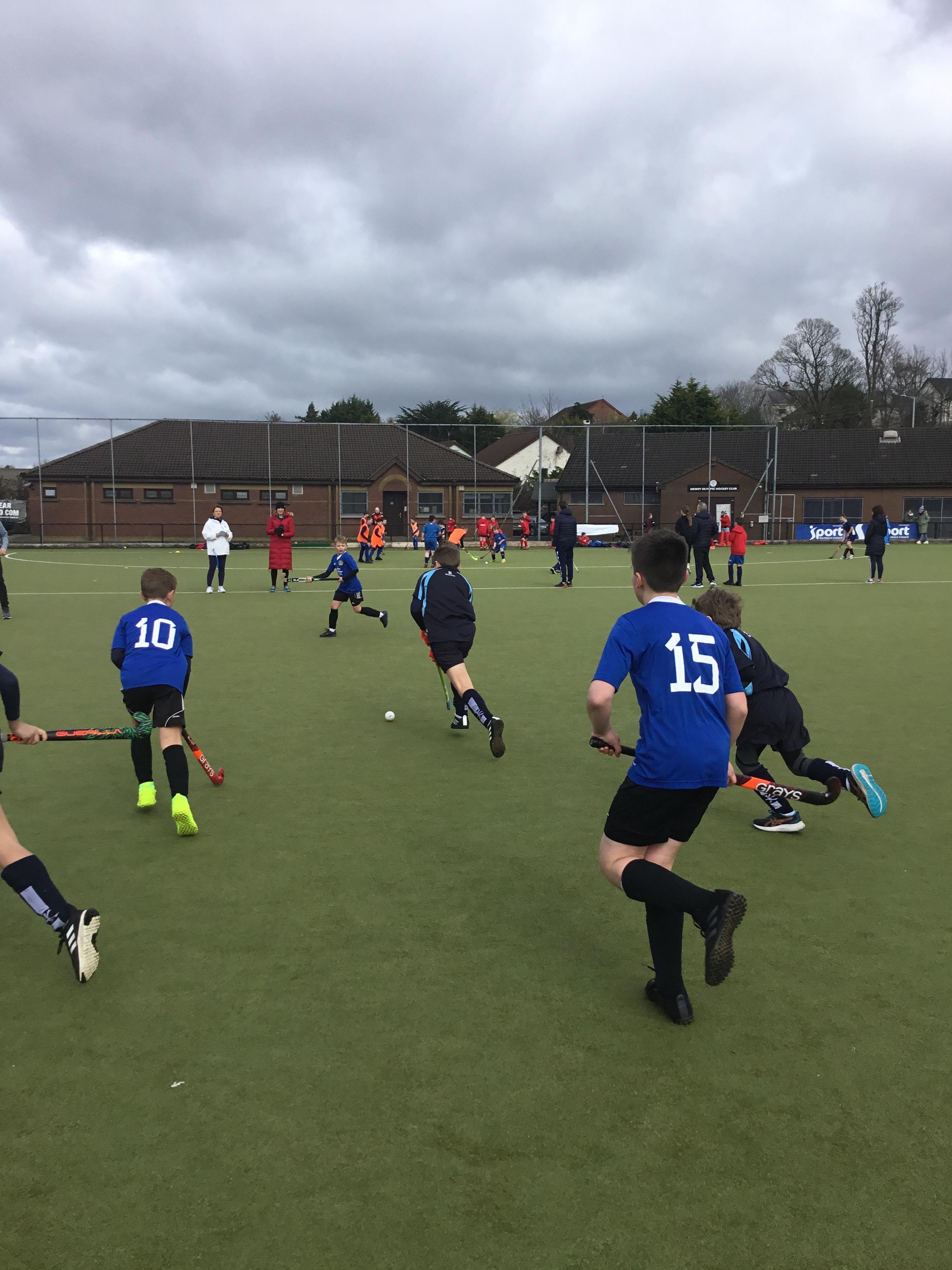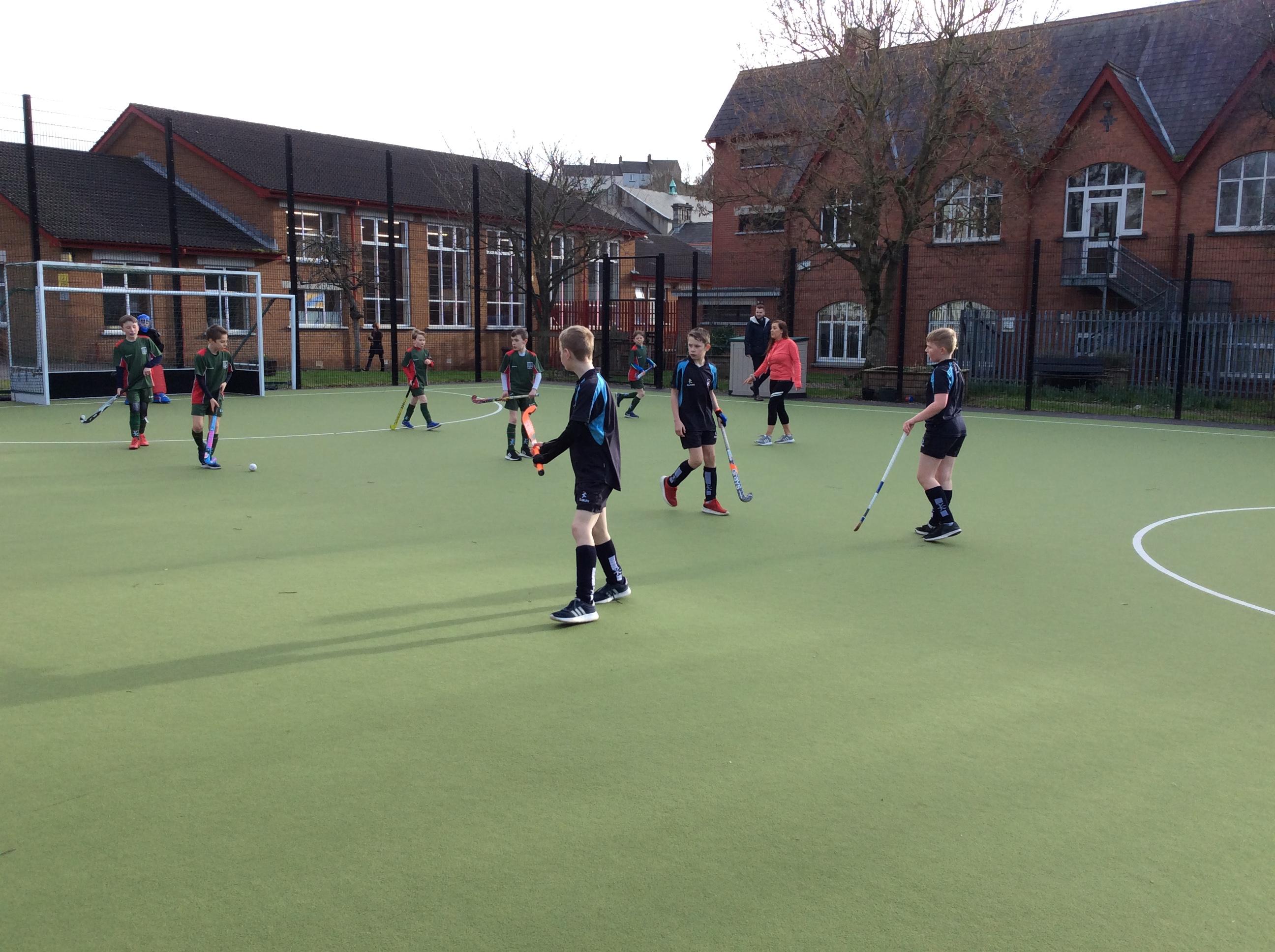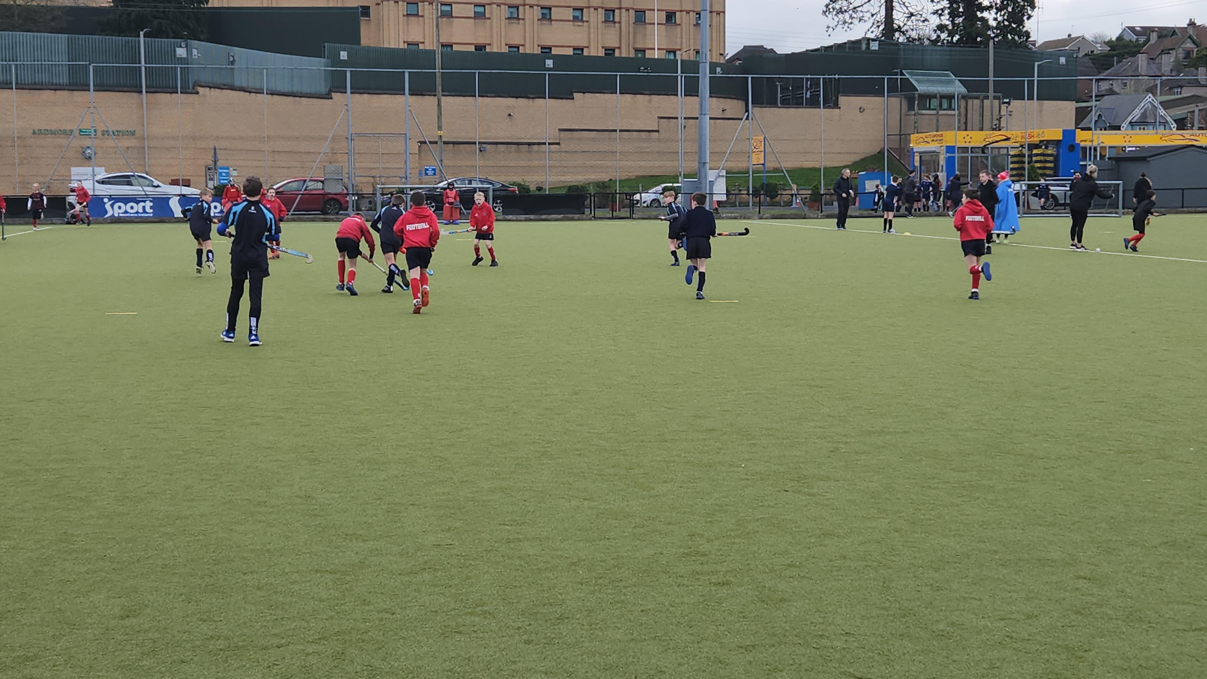 Boys hockey team in action against Markethill PS, Dromore Central PS and Mullavilly PS (February 2019)