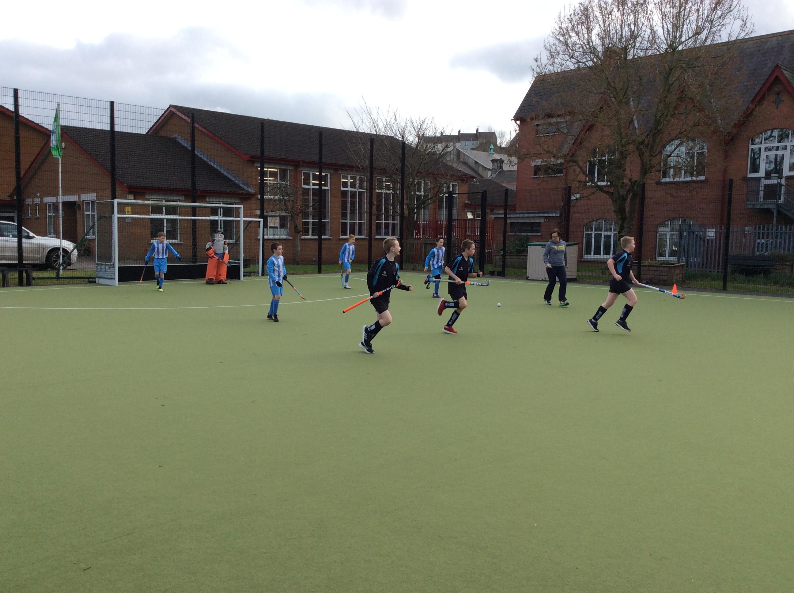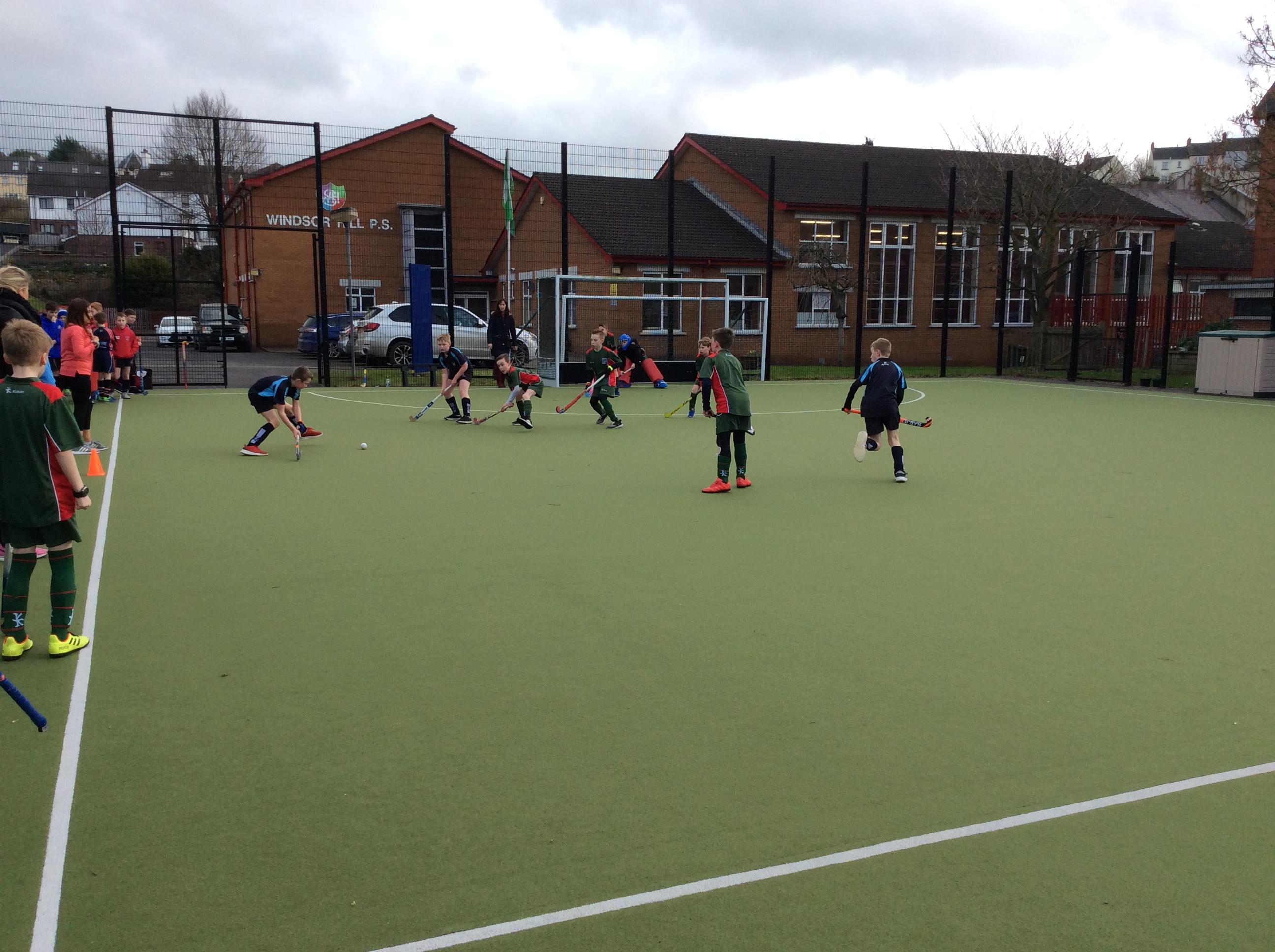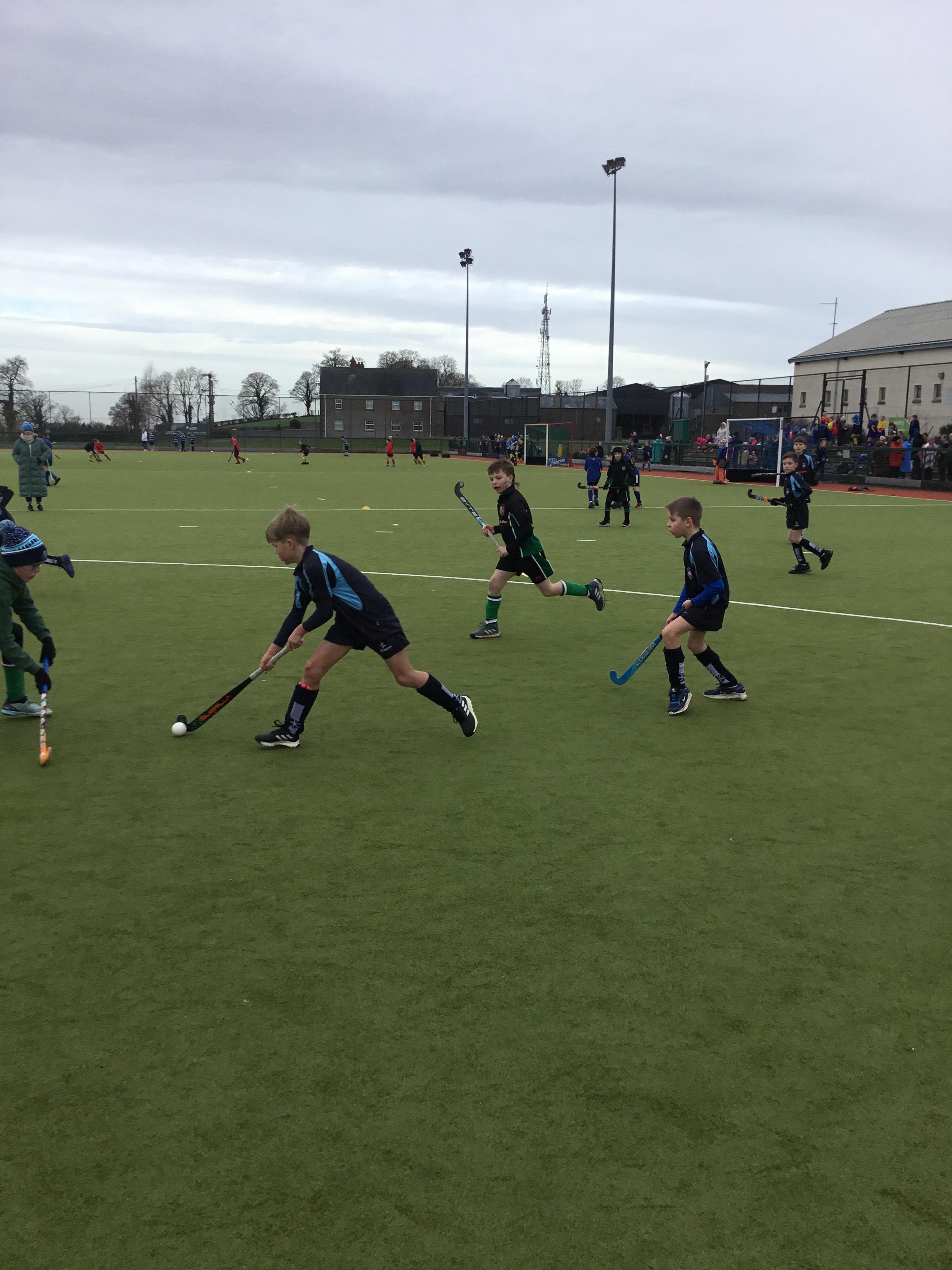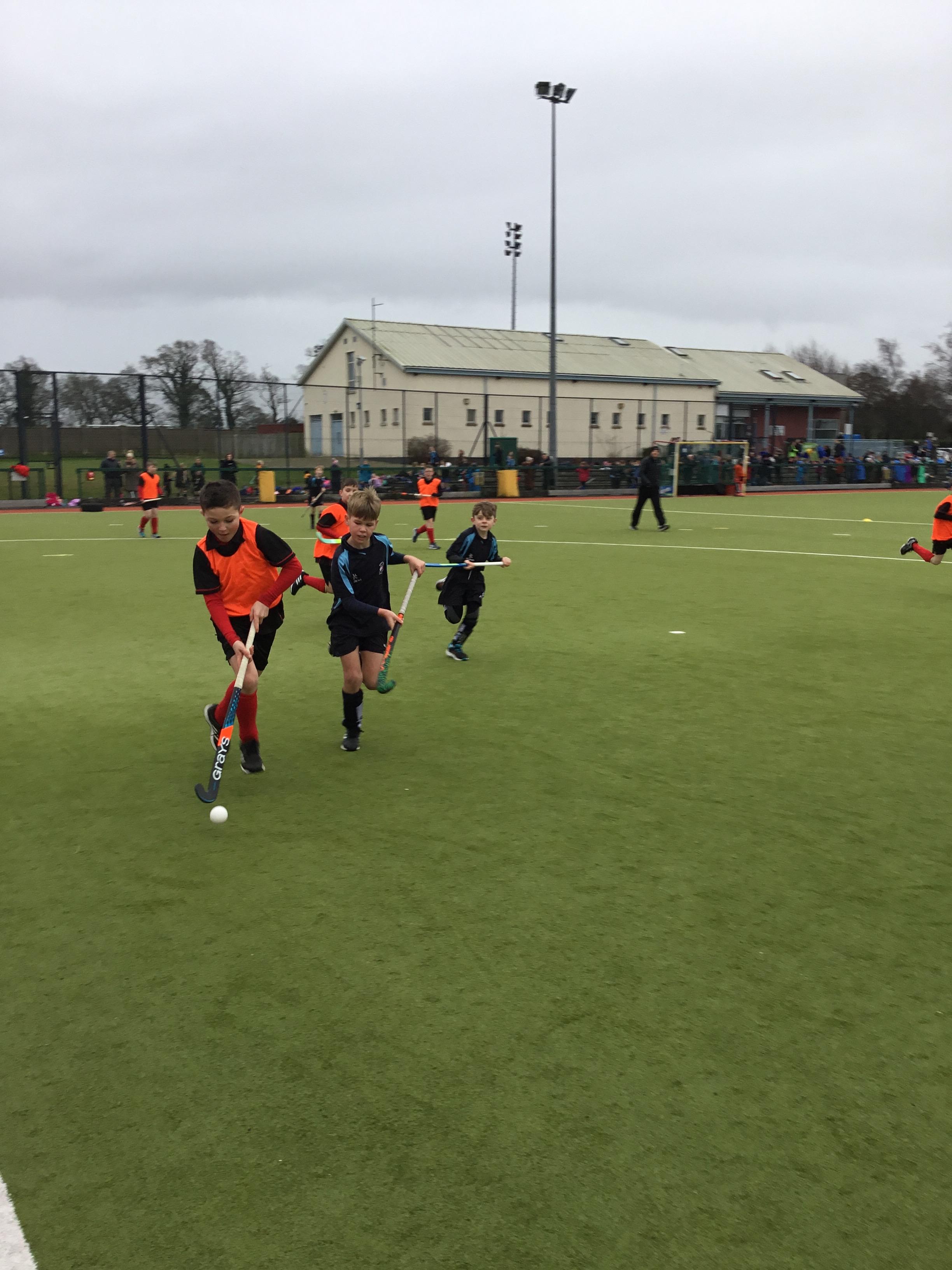 Boys hockey team in action against Markethill PS, Dromore Central PS and Mullavilly PS (February 2019)