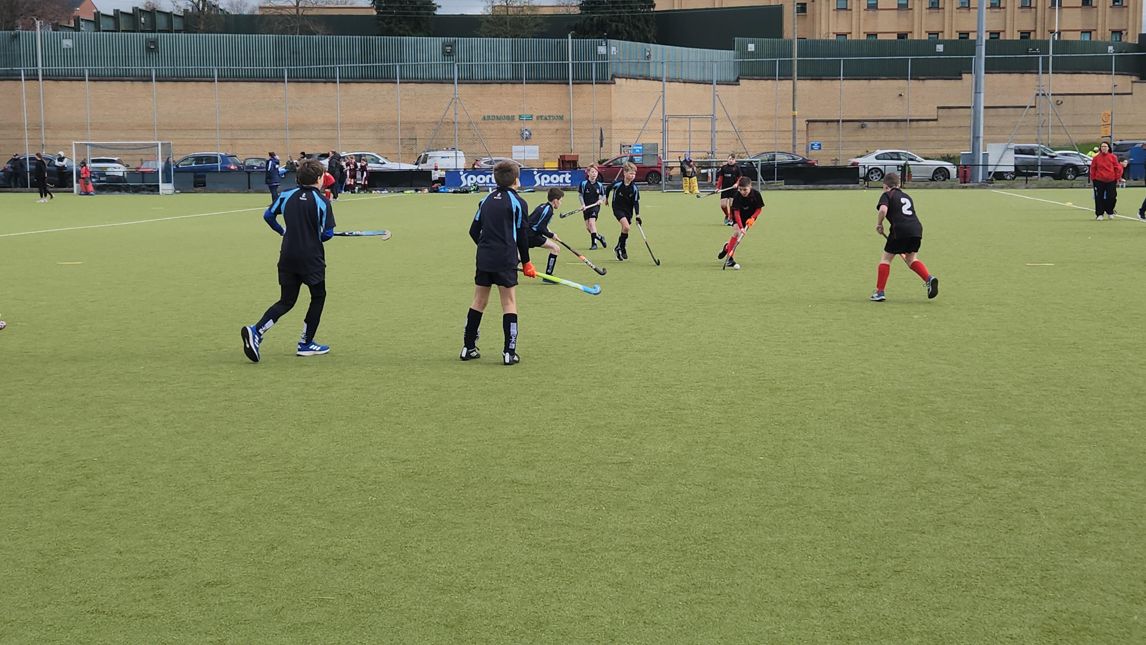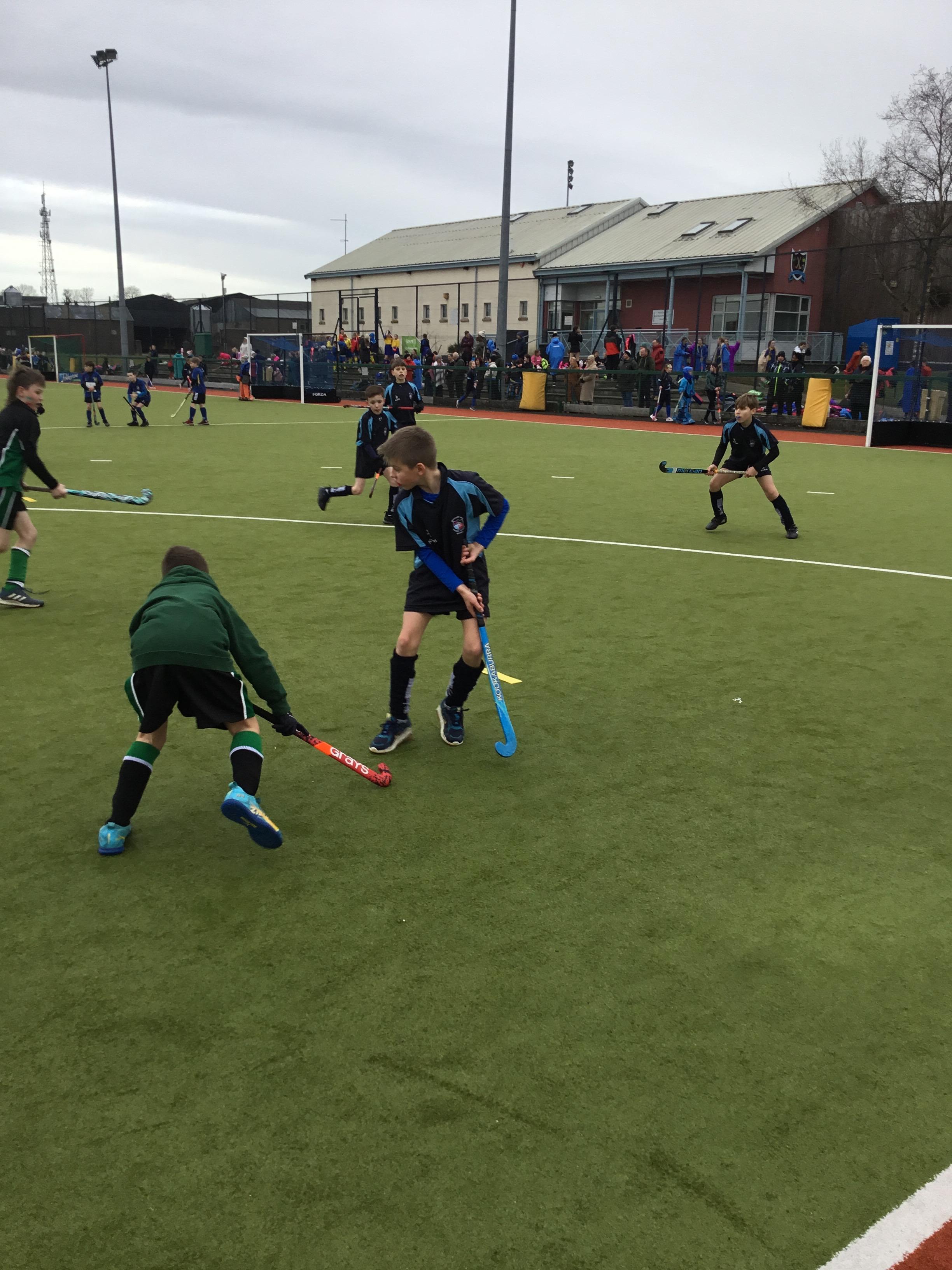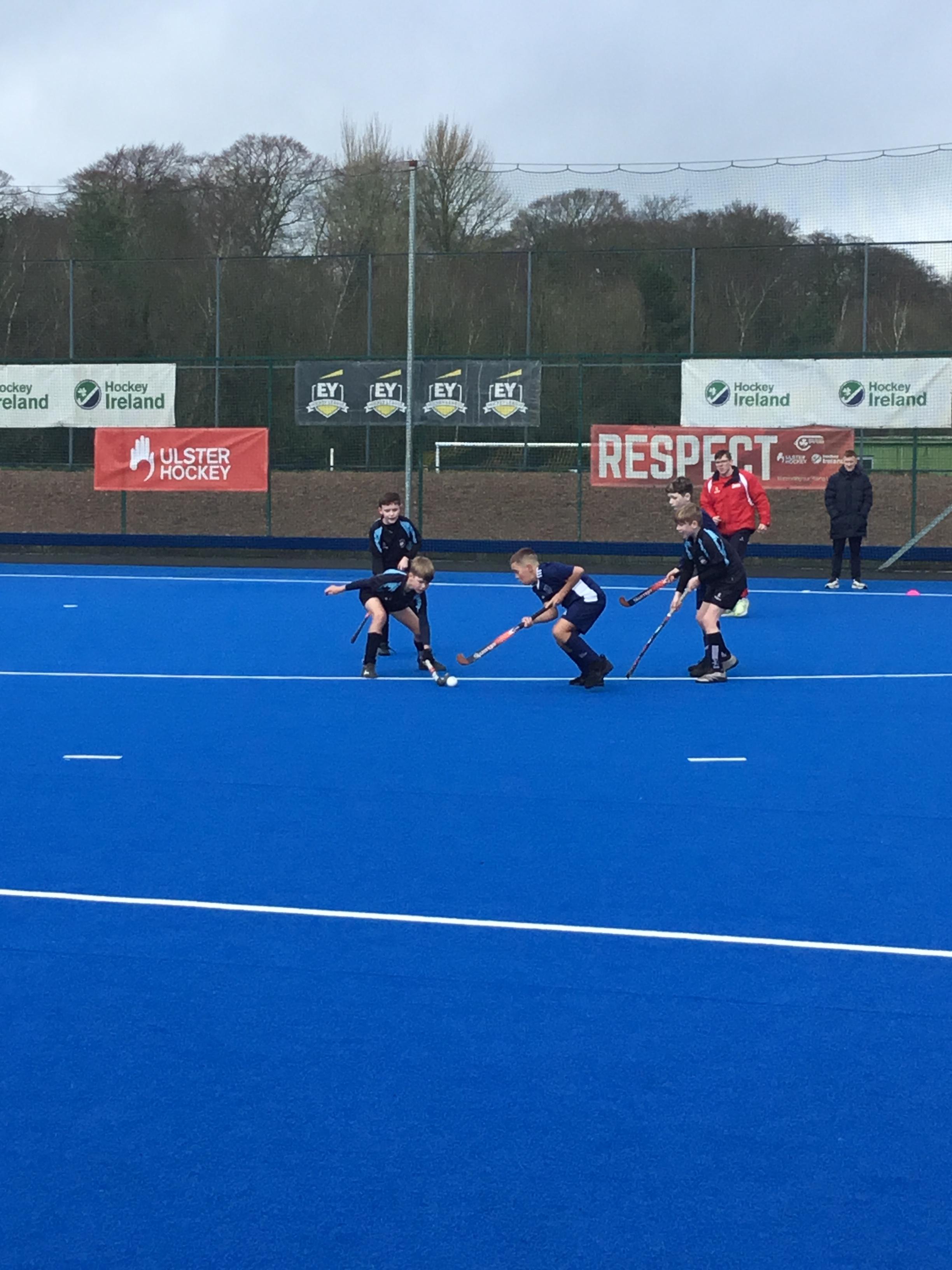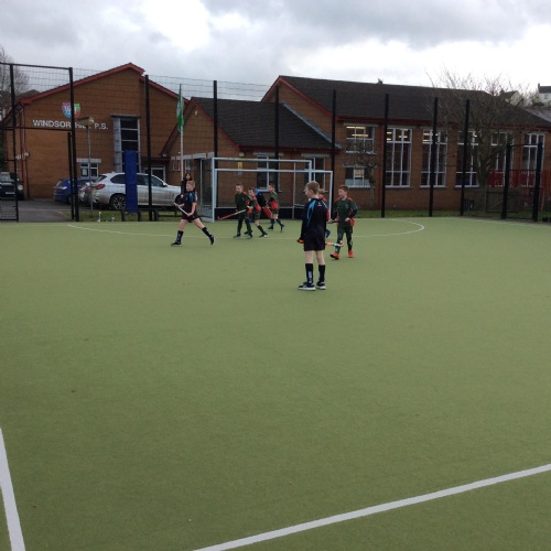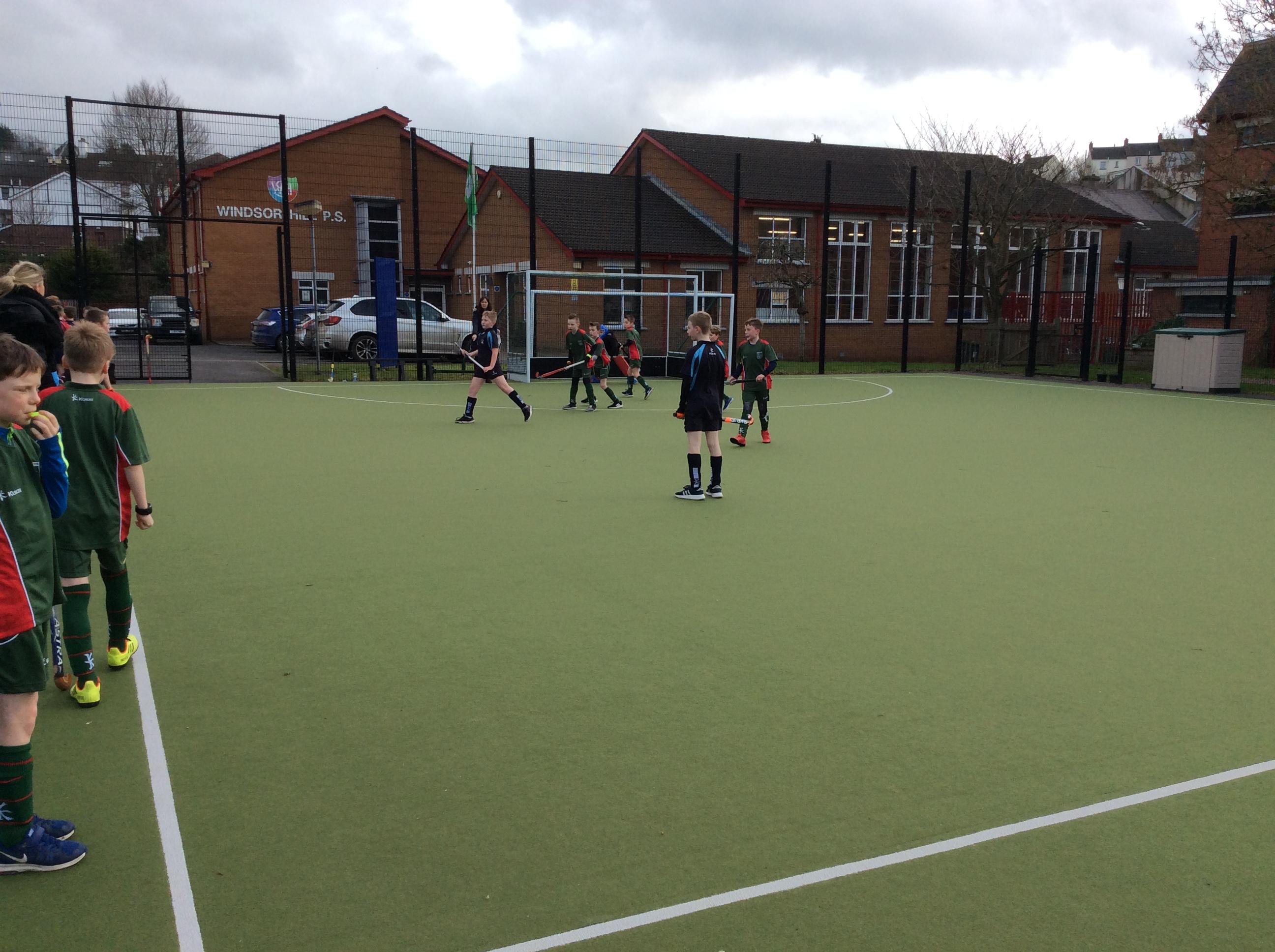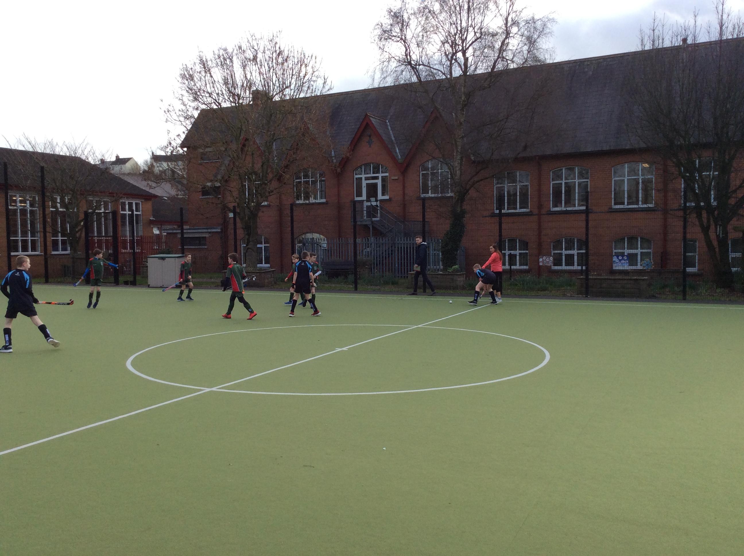 Boys hockey team in action against Markethill PS, Dromore Central PS and Mullavilly PS (February 2019)