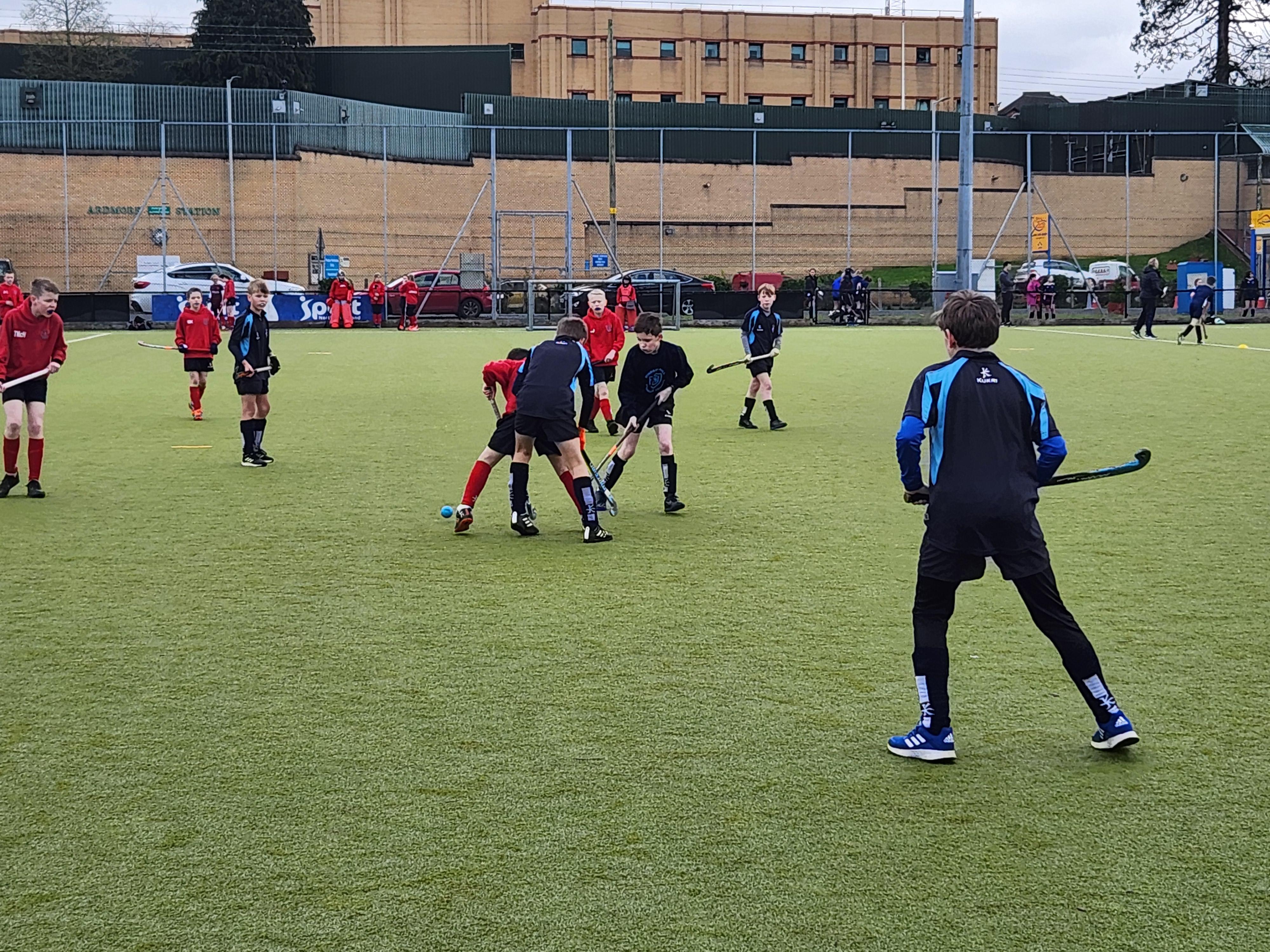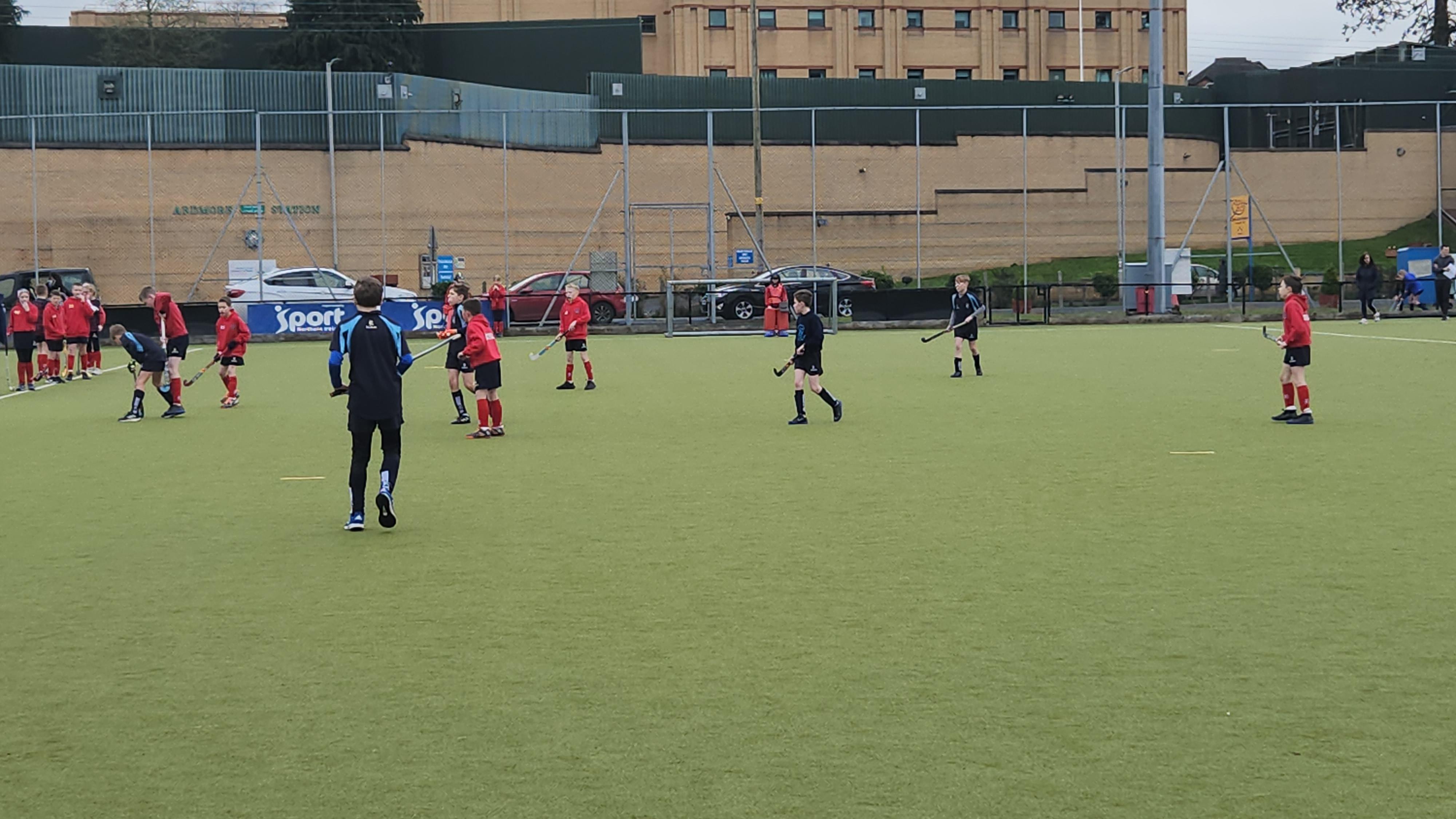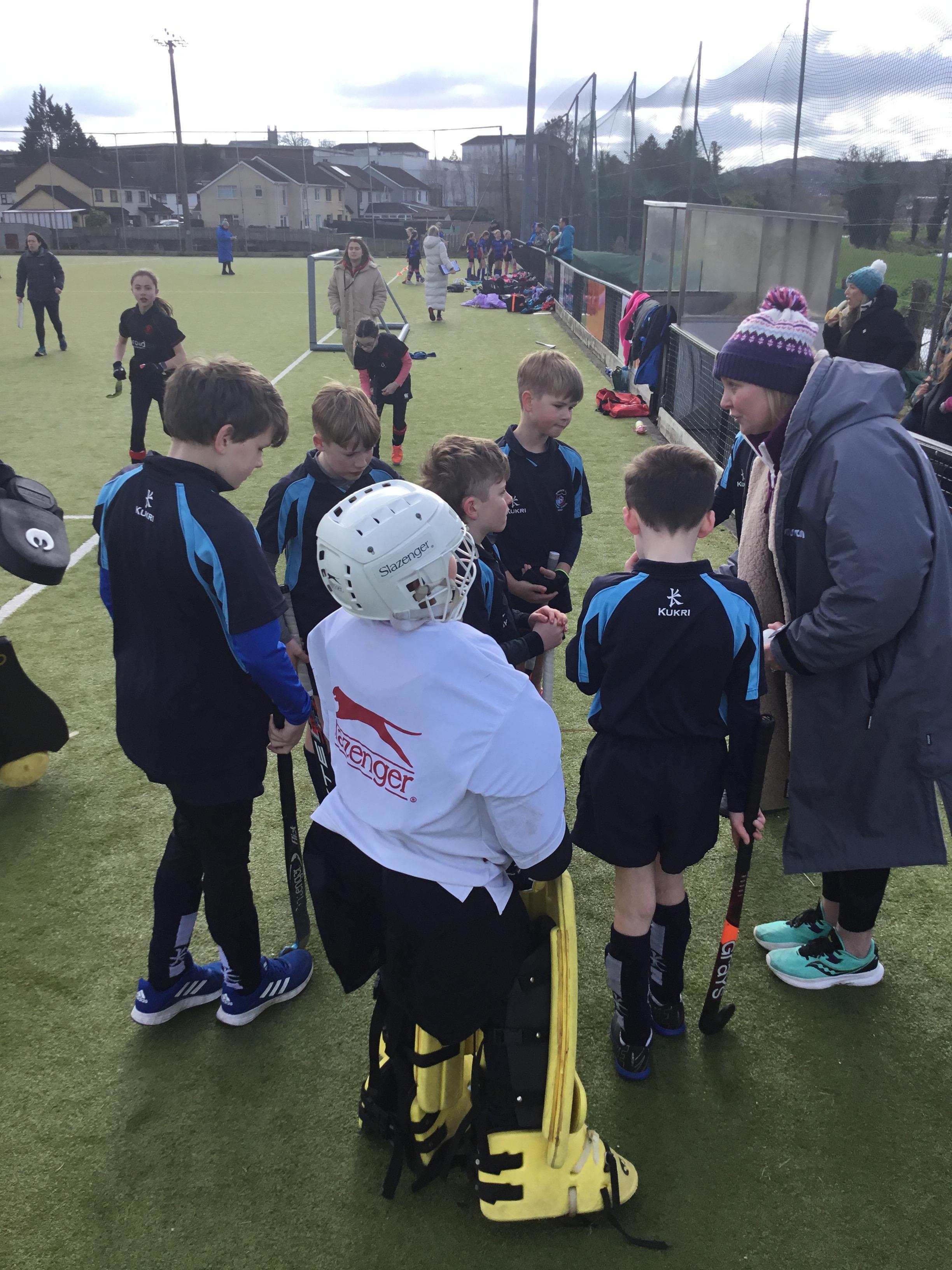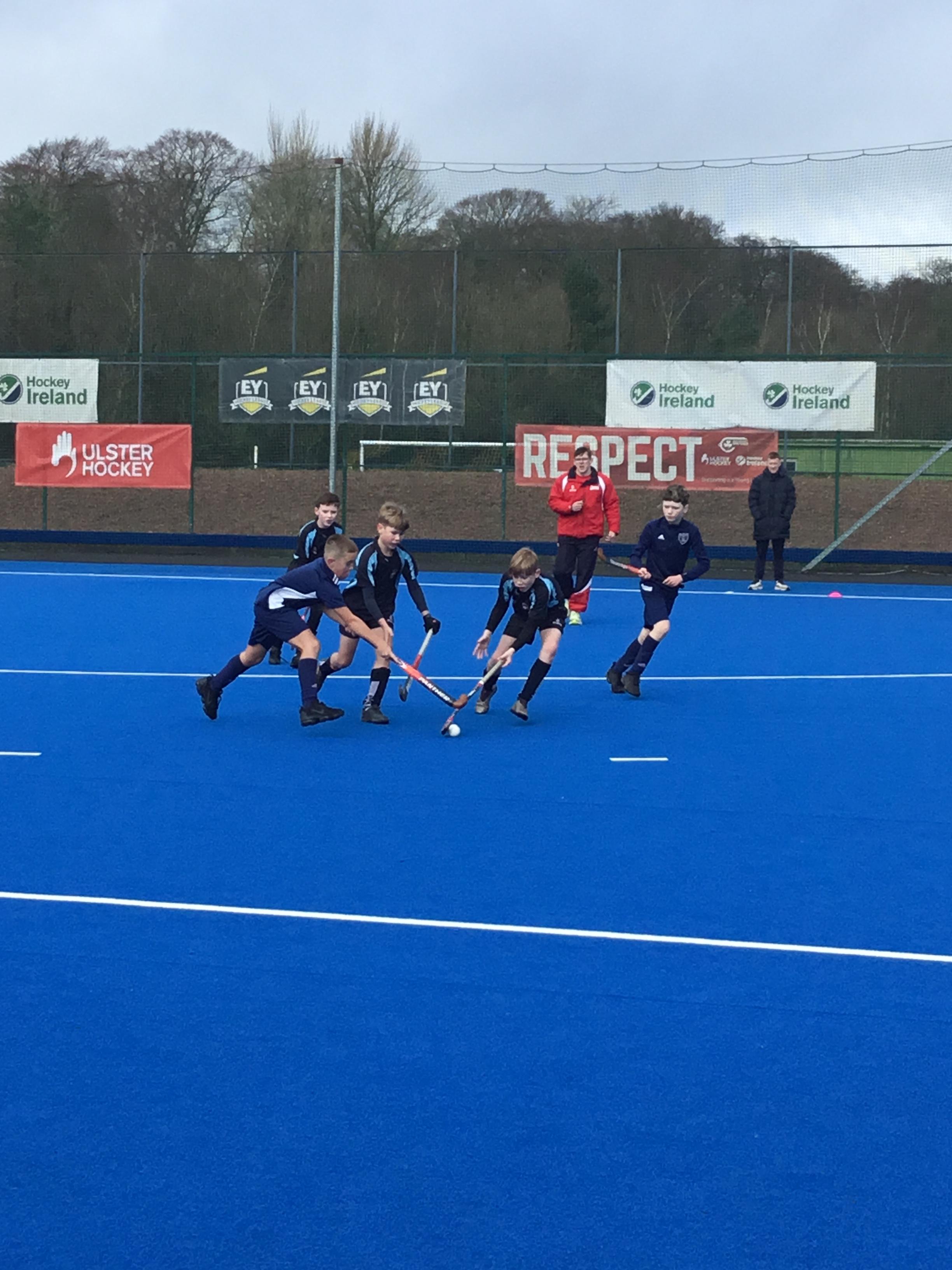 Boys hockey team in action against Markethill PS, Dromore Central PS and Mullavilly PS (February 2019)