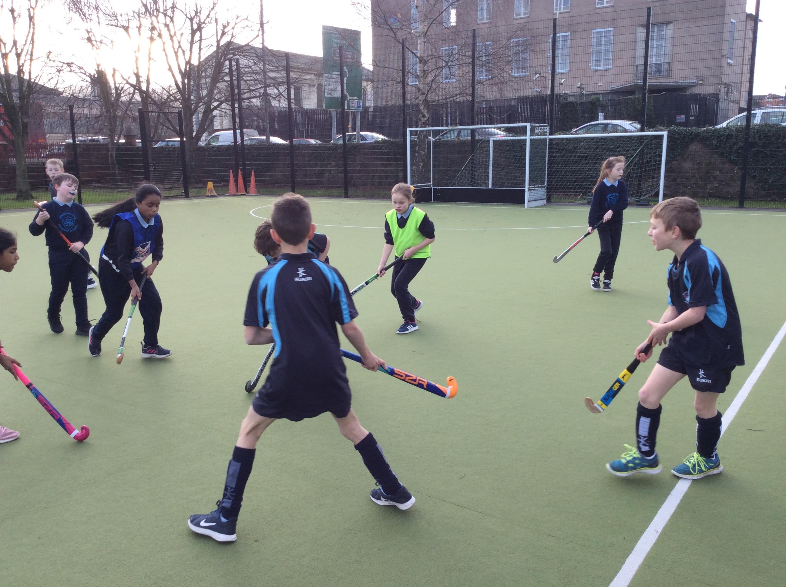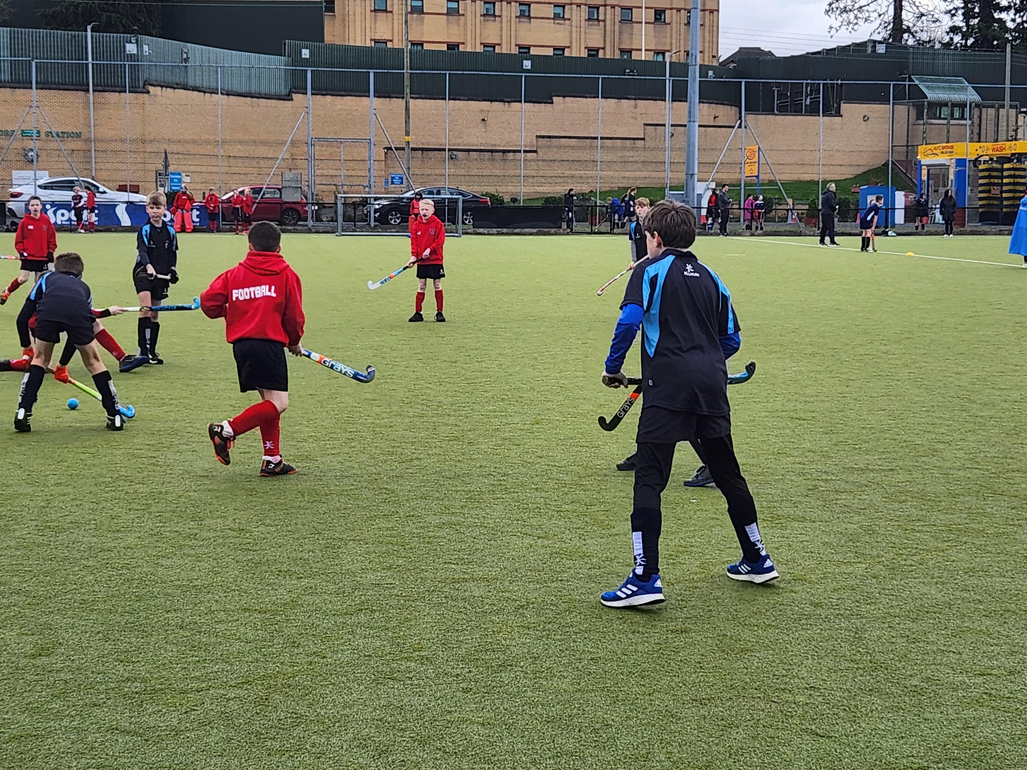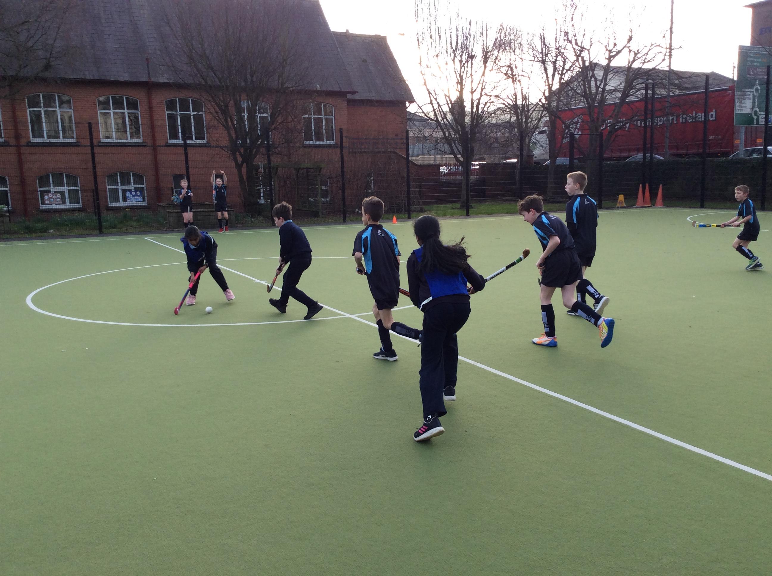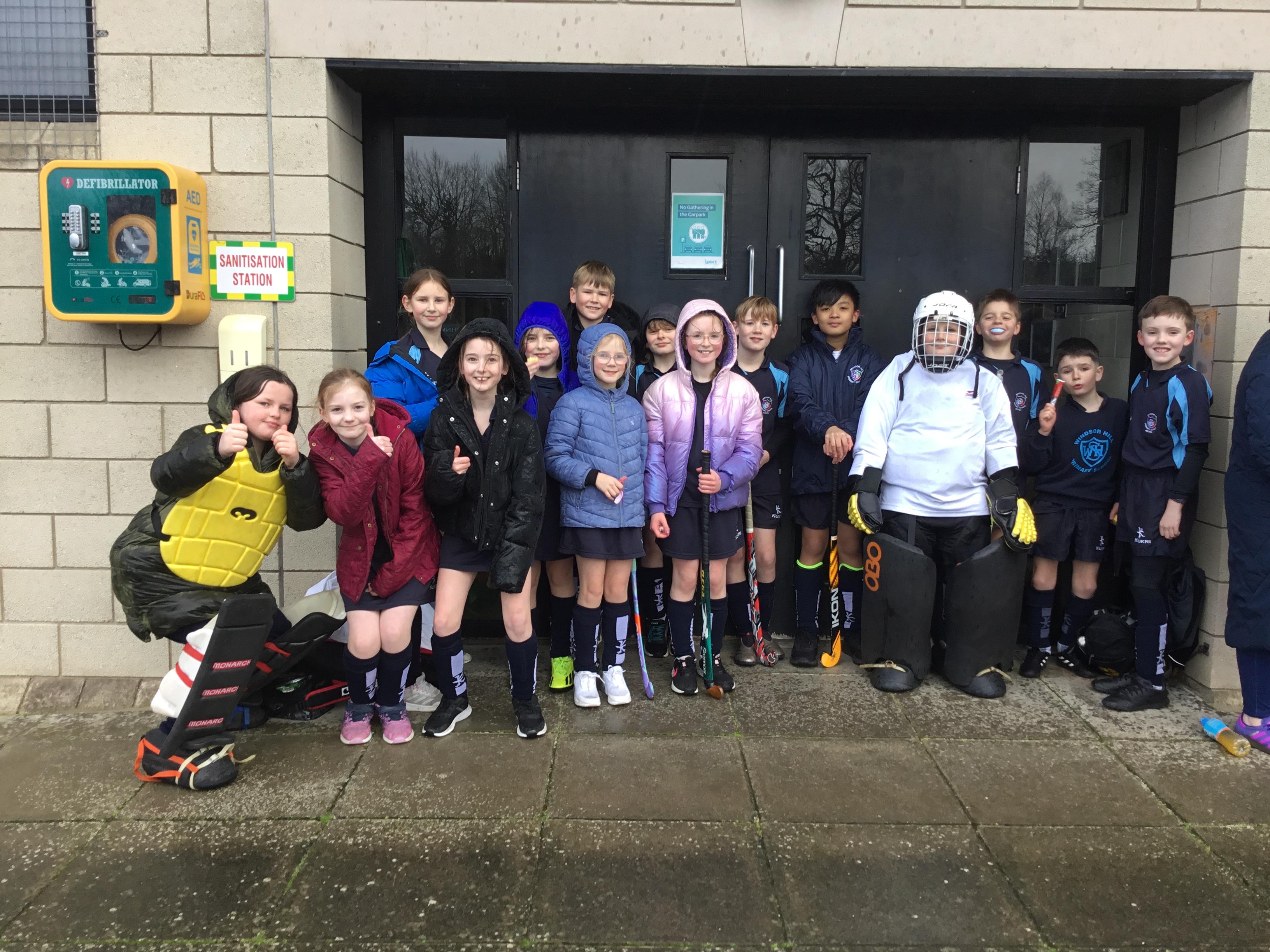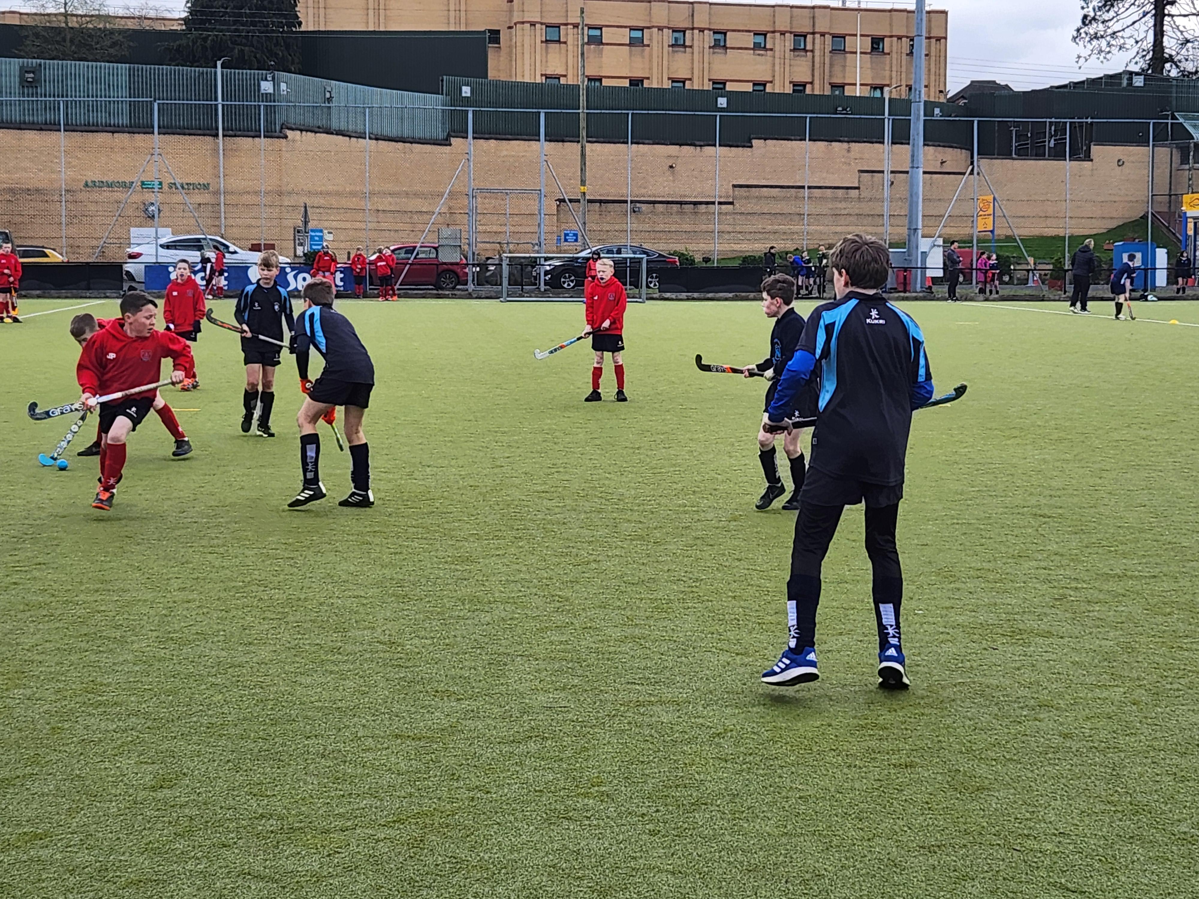 Boys hockey team in action against Markethill PS, Dromore Central PS and Mullavilly PS (February 2019)