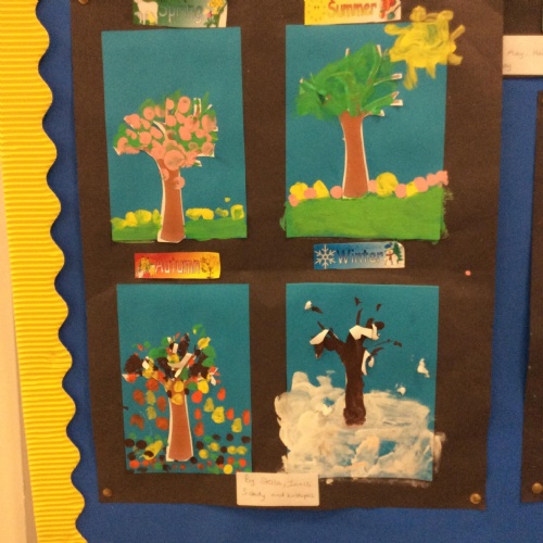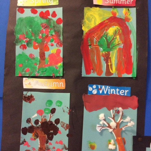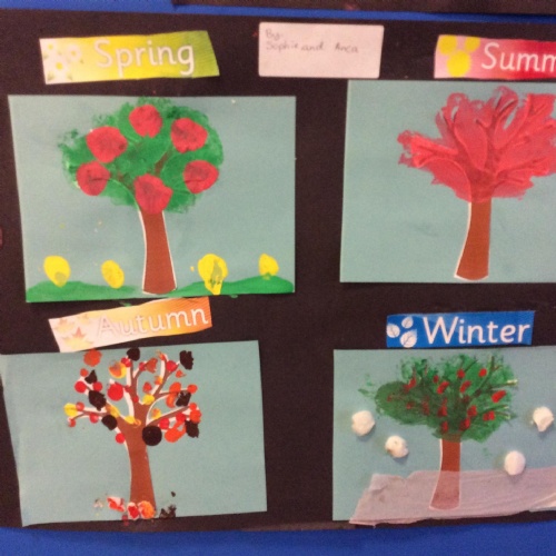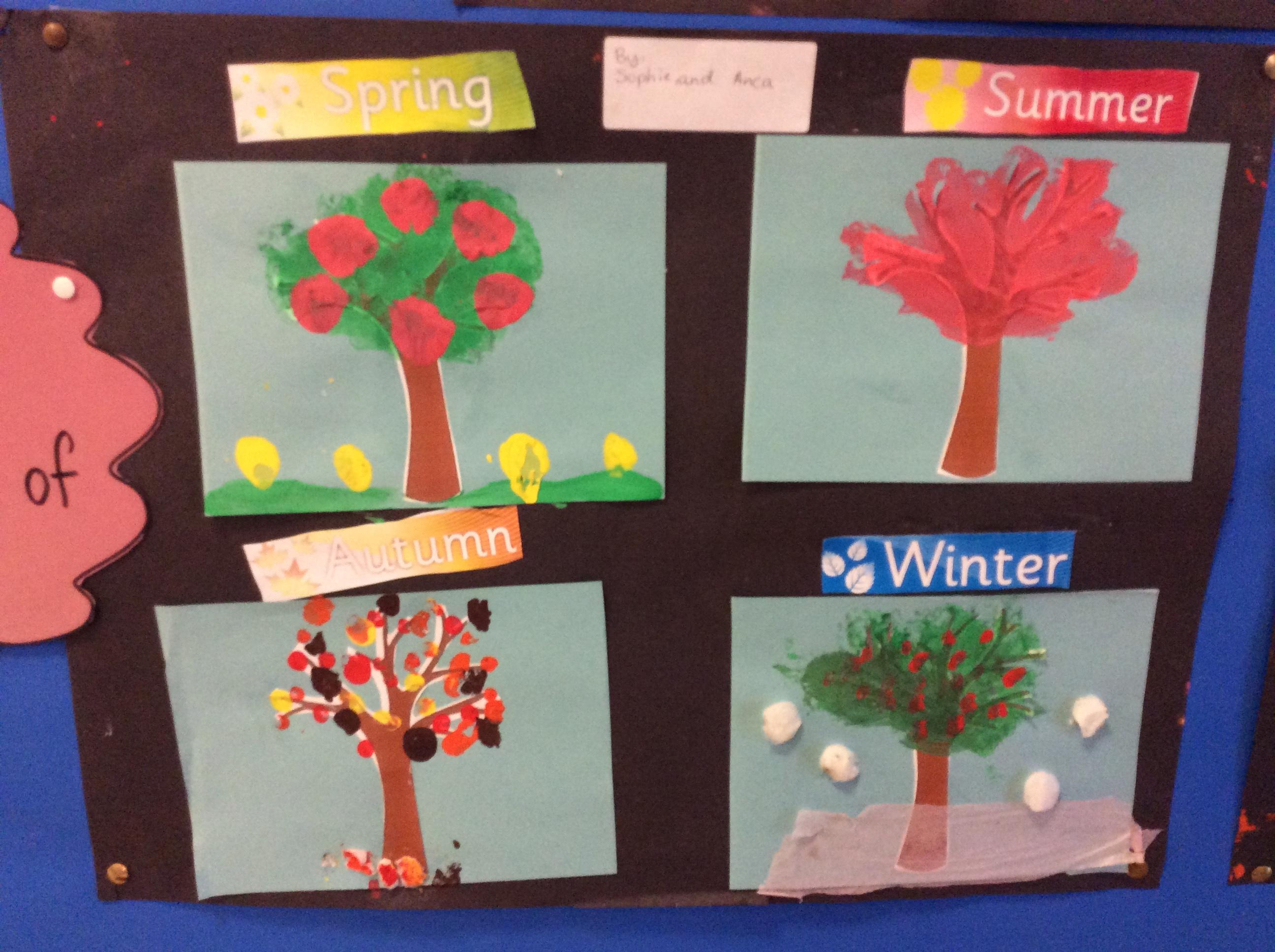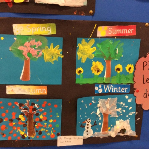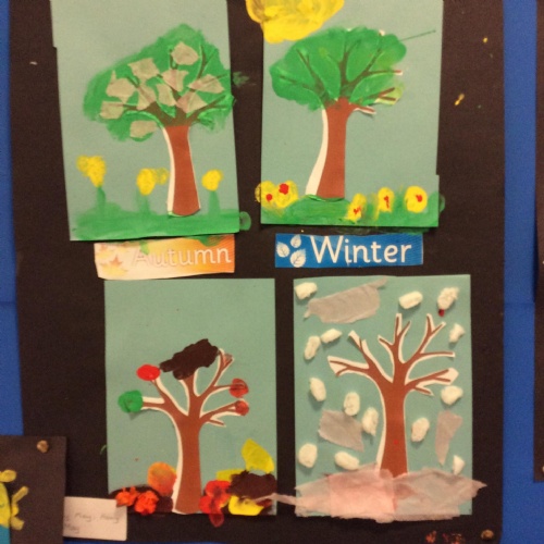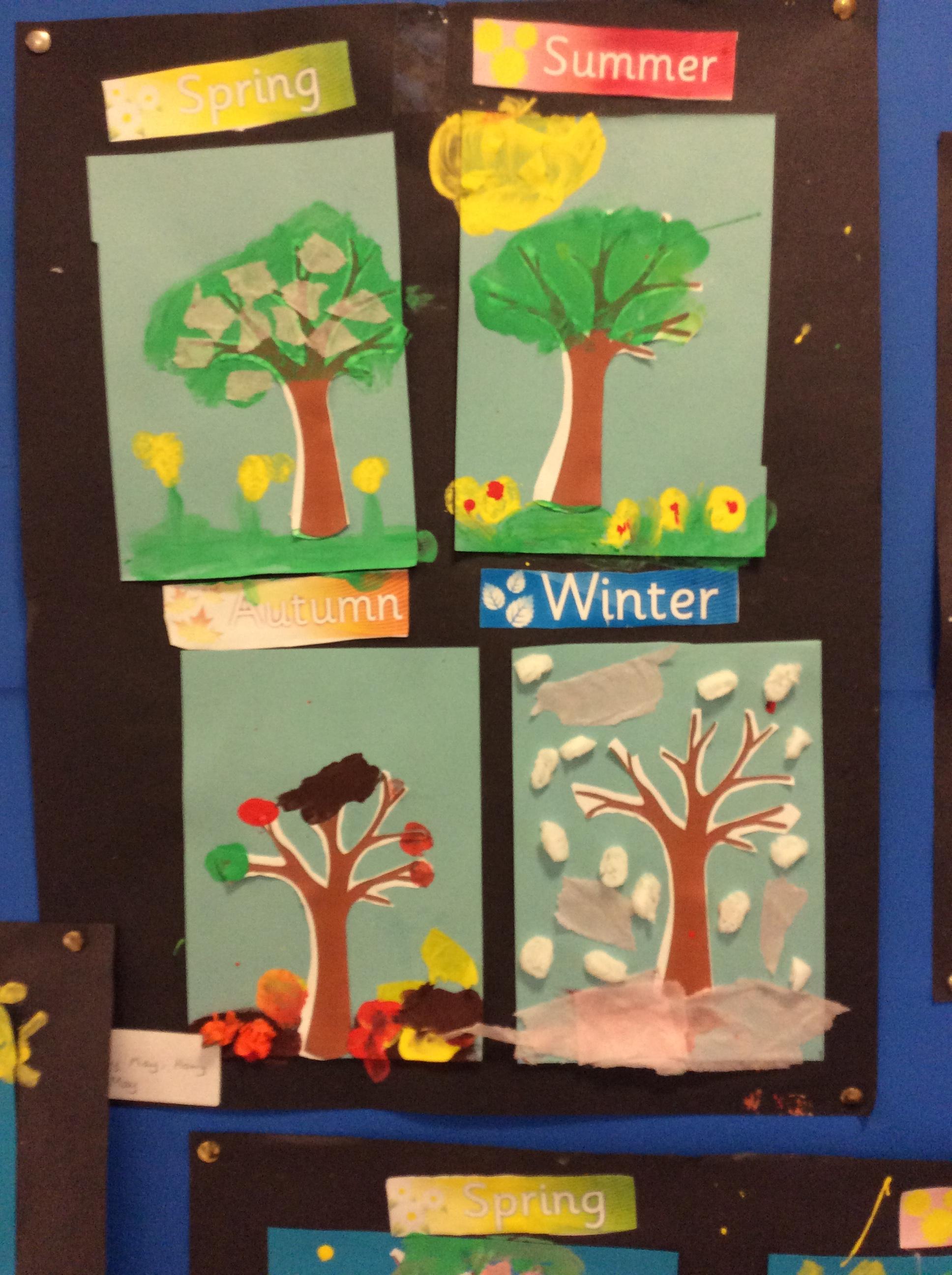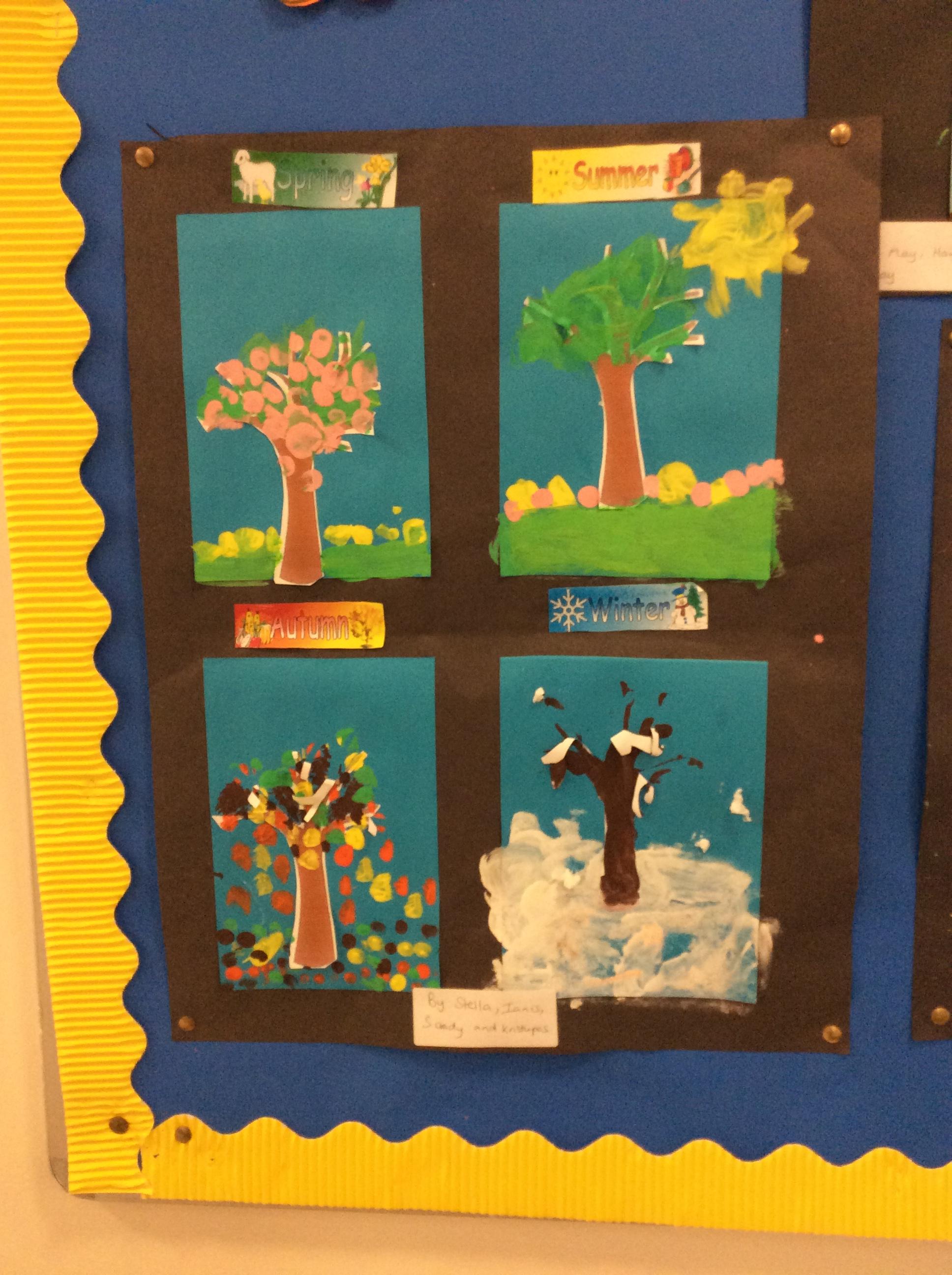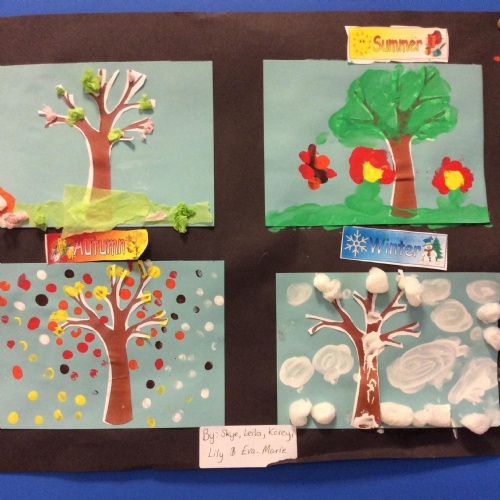P3 have been working on the topic of weather with their friends at St Patrick's. Look at these lovely collages they have made together, looking at how the season affect our landscape and wildlife! Well done P3, you've done a great job!