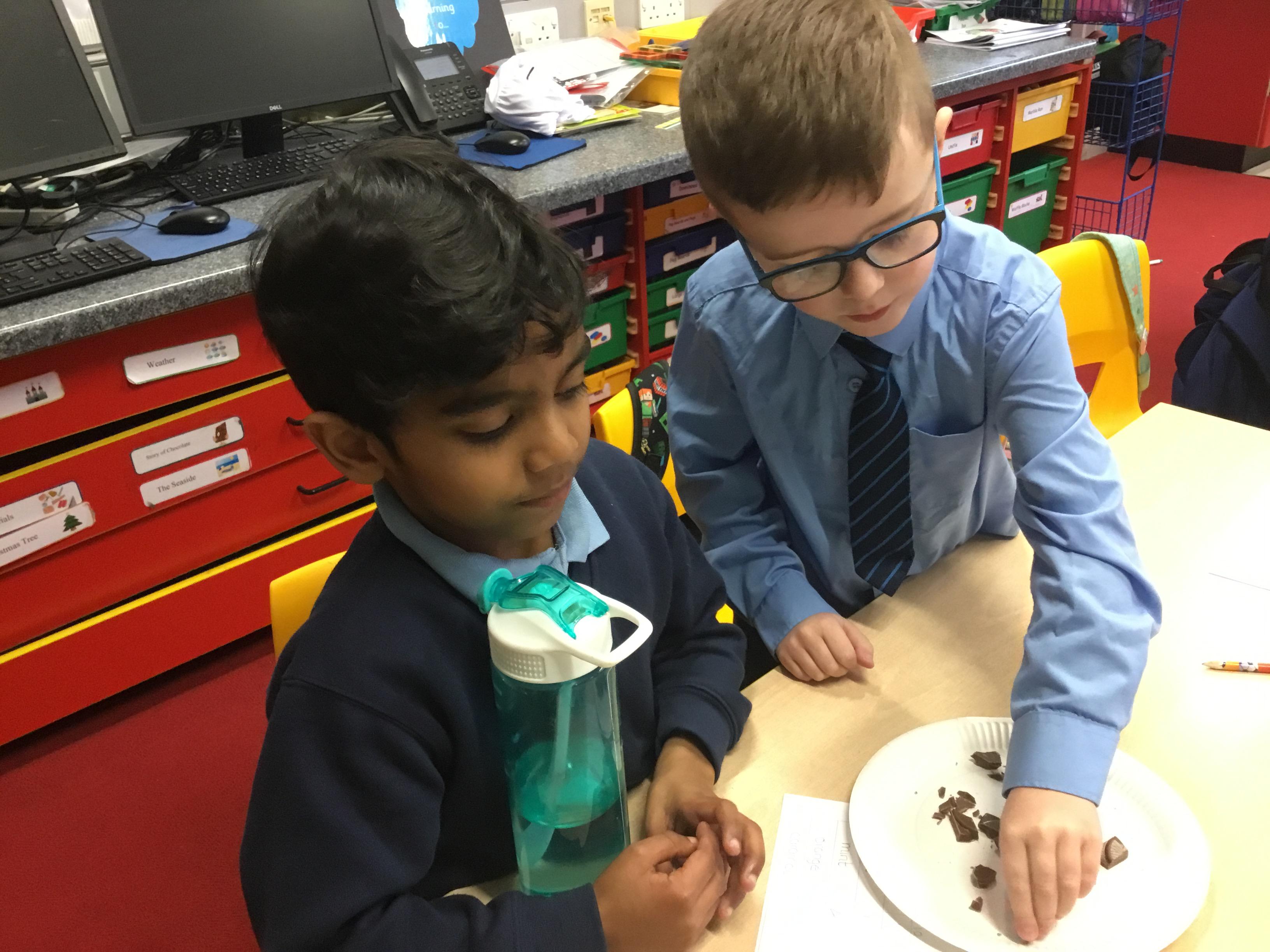 This half term we learned about 'The Story of Chocolate'. We had great fun taste testing, making clay chocolate items, baking a cake following a recipe, conducting a chocolate melting experiment and much more!!