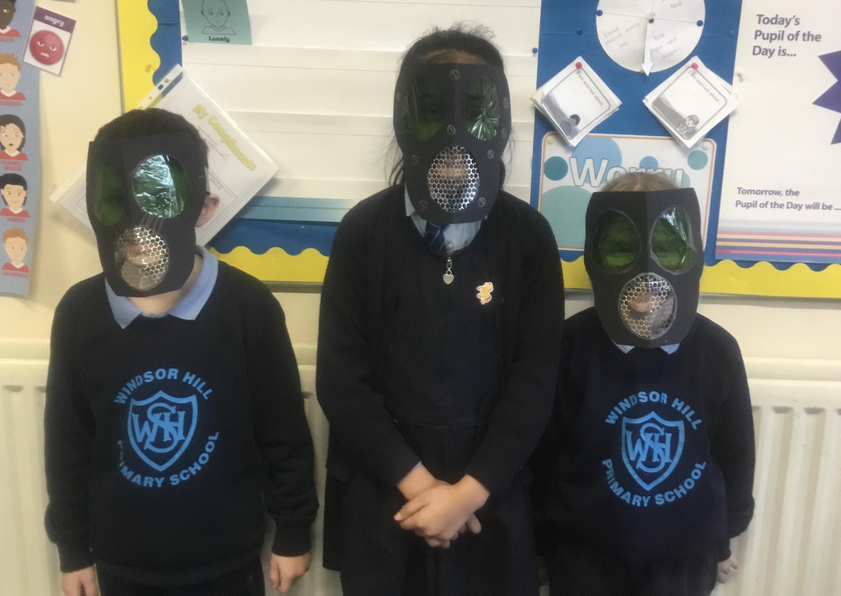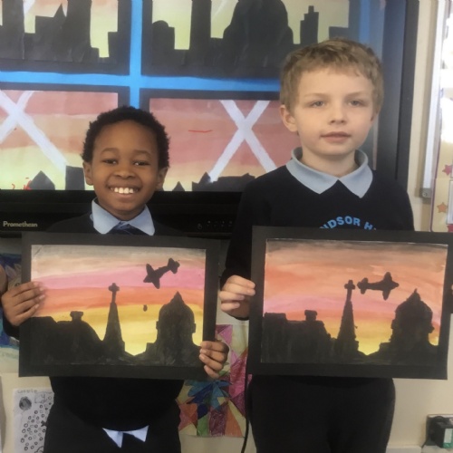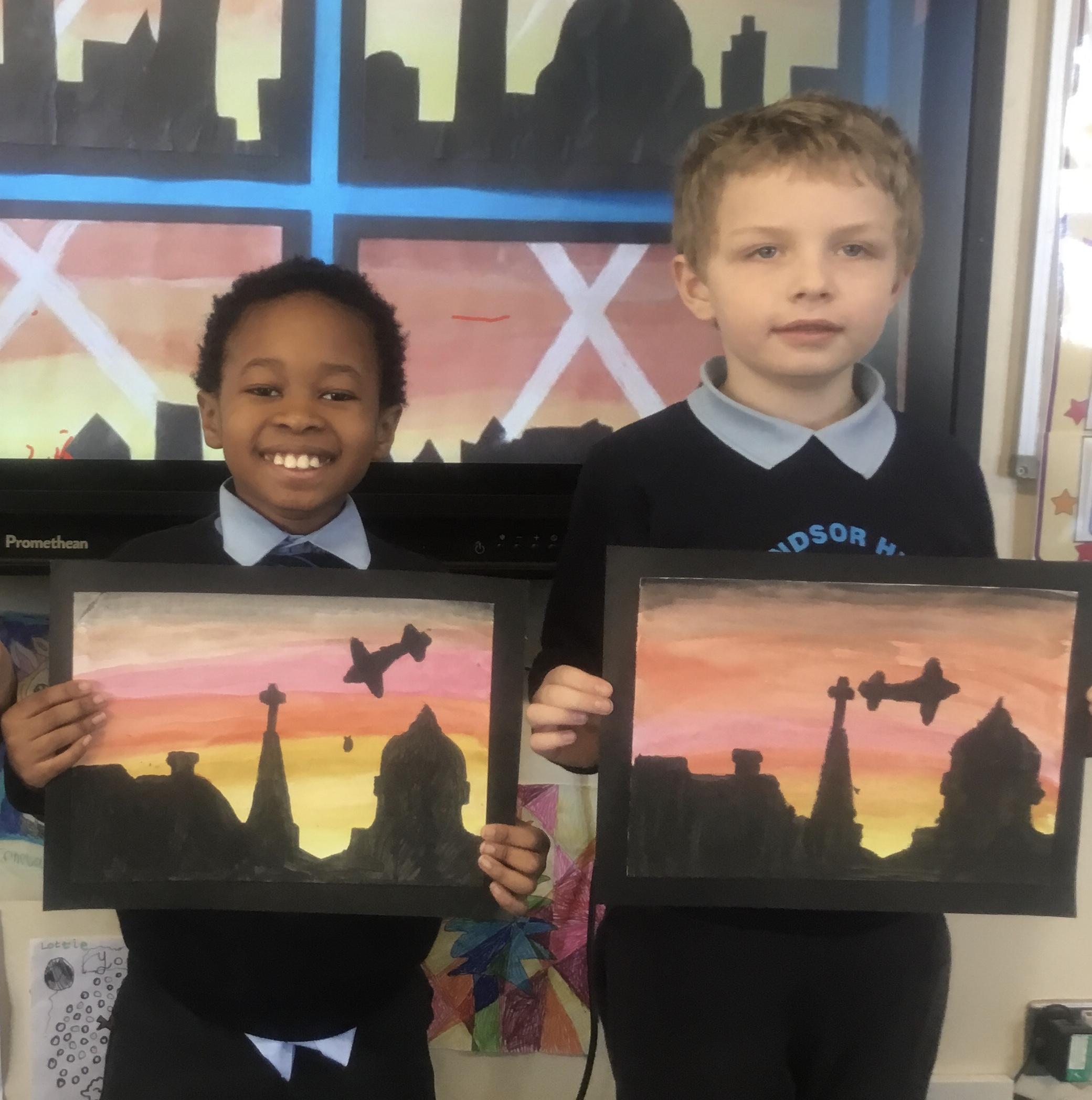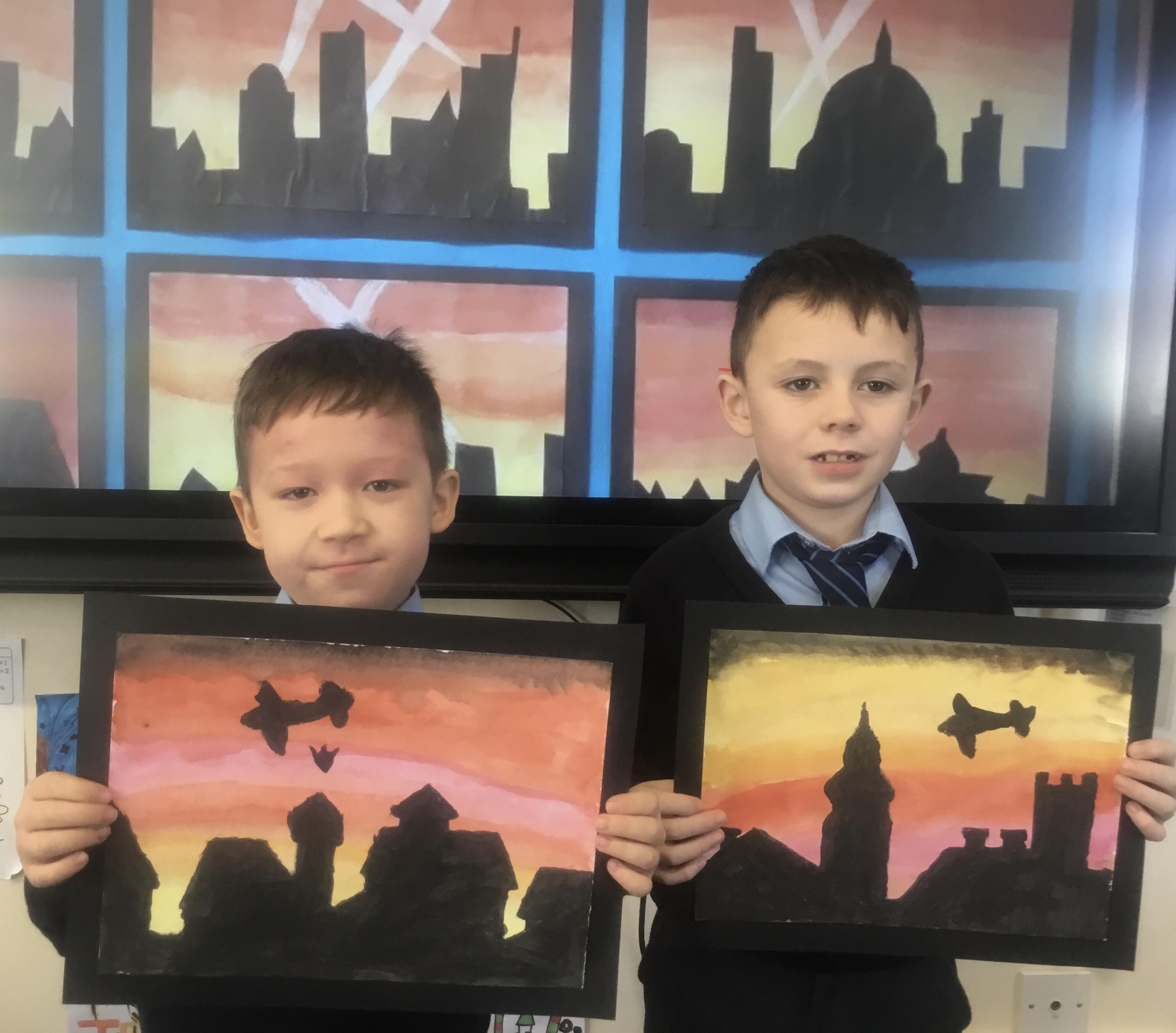 Have a l����k at some of our very effective artwork on the Blitz skylines, and our gas masks made from scrap materials in our class art boxes.