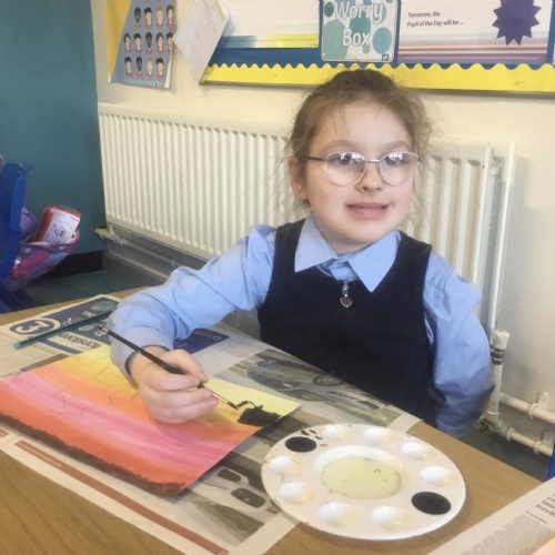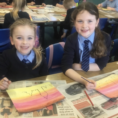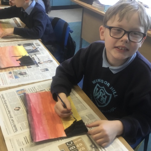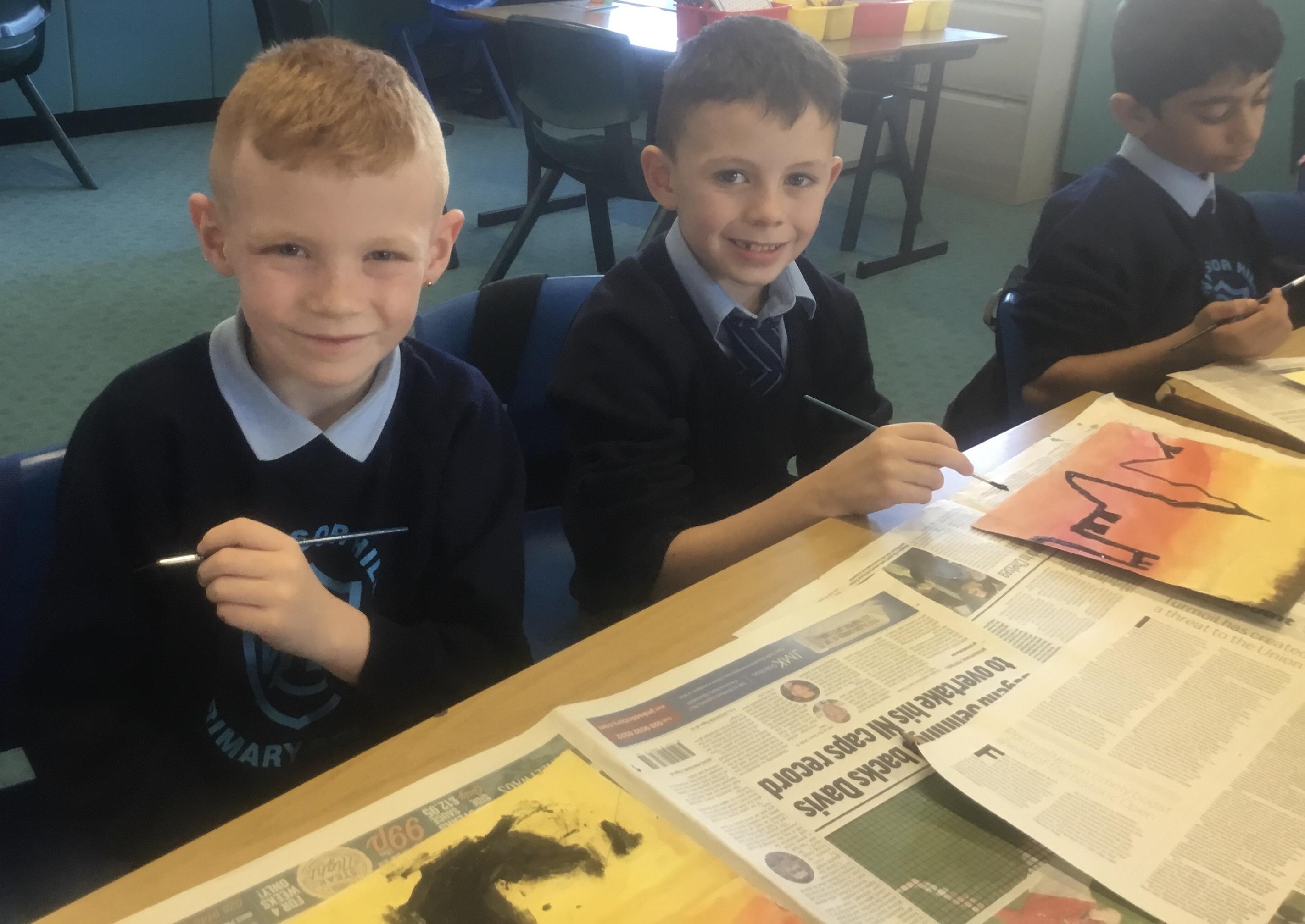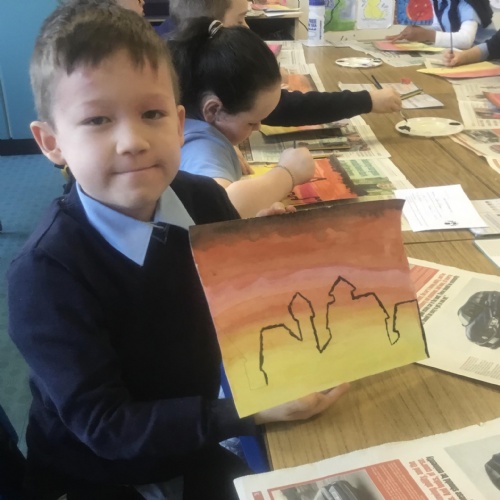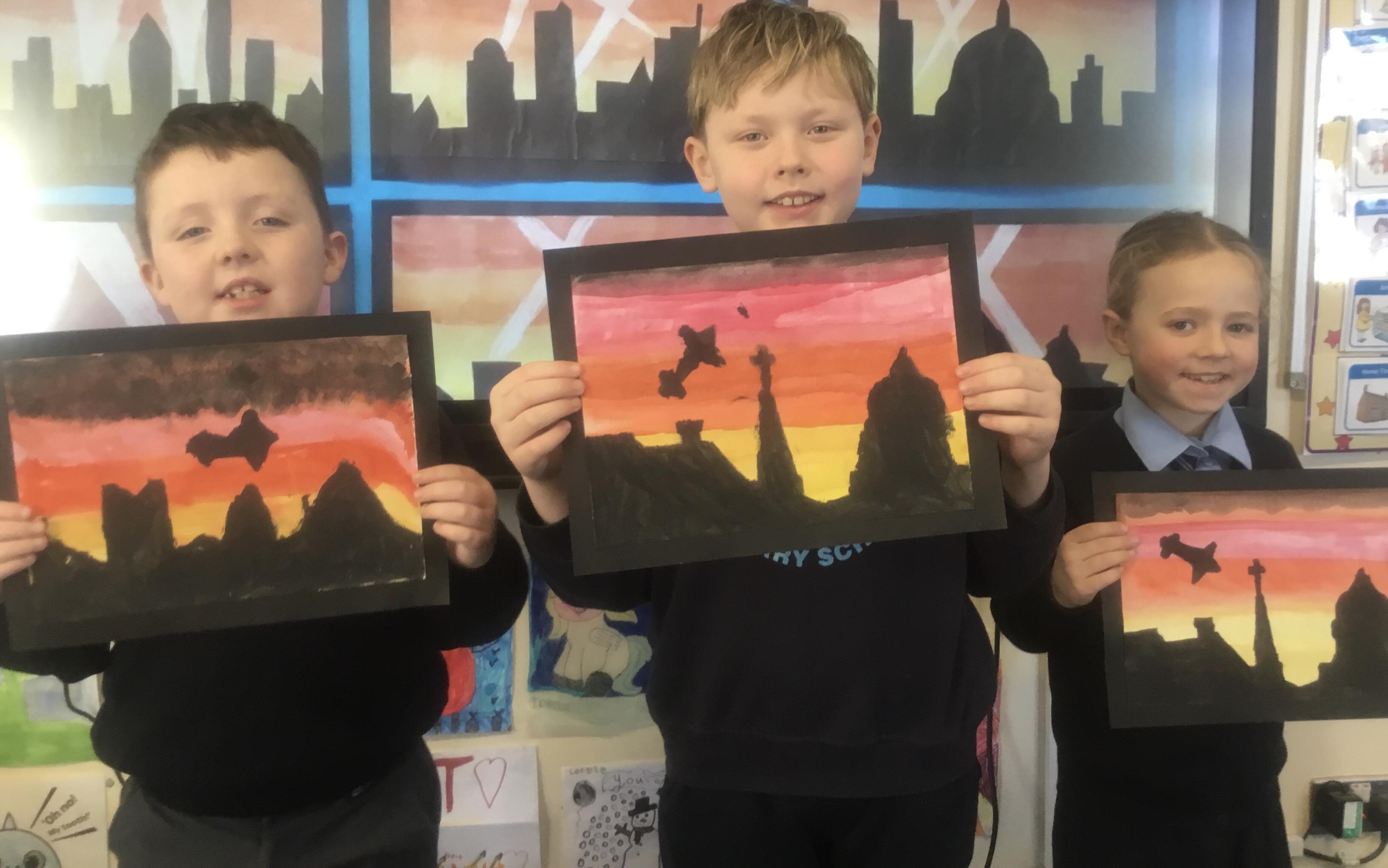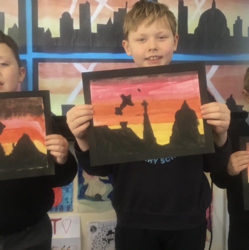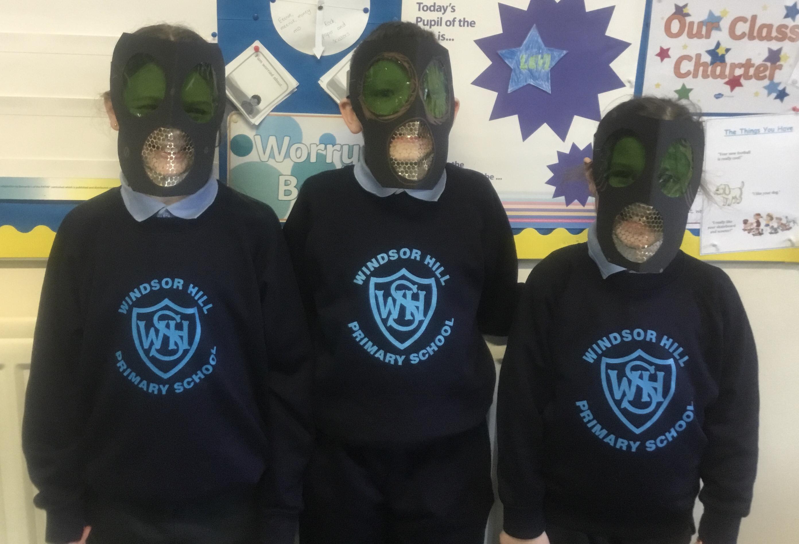 Have a l����k at some of our very effective artwork on the Blitz skylines, and our gas masks made from scrap materials in our class art boxes.